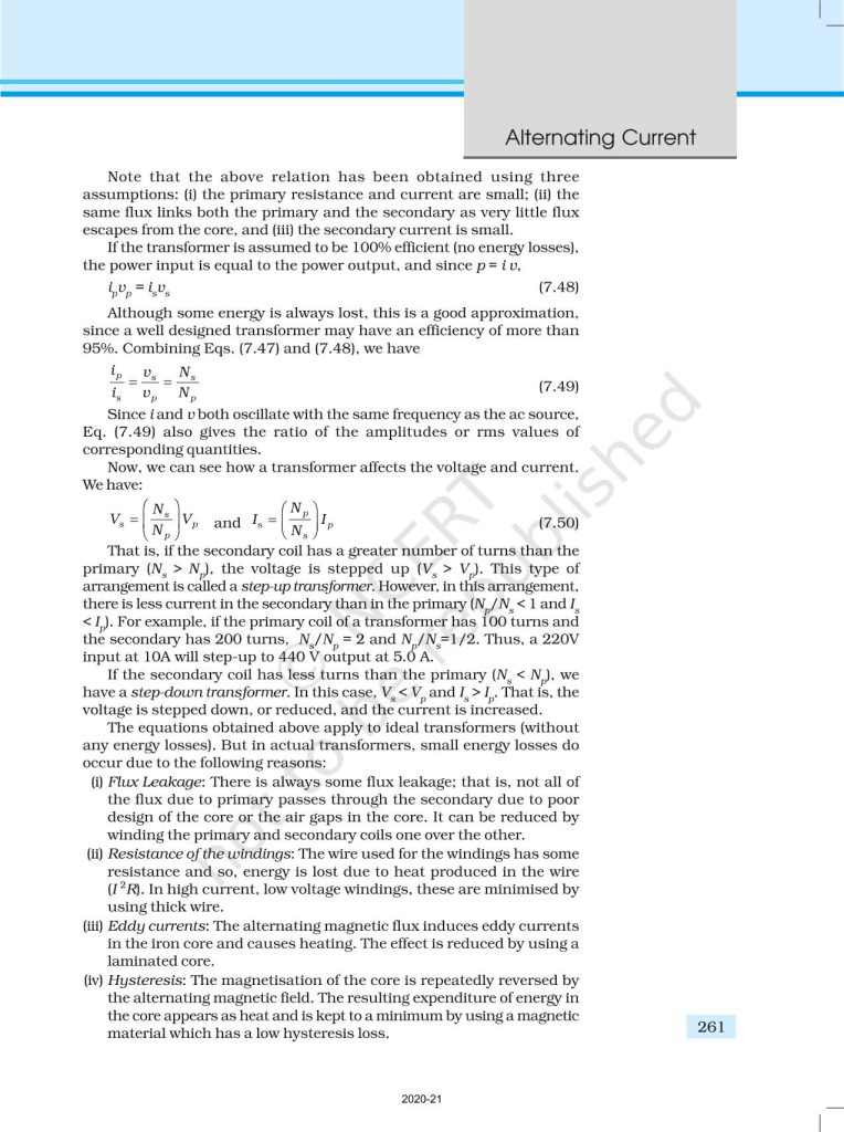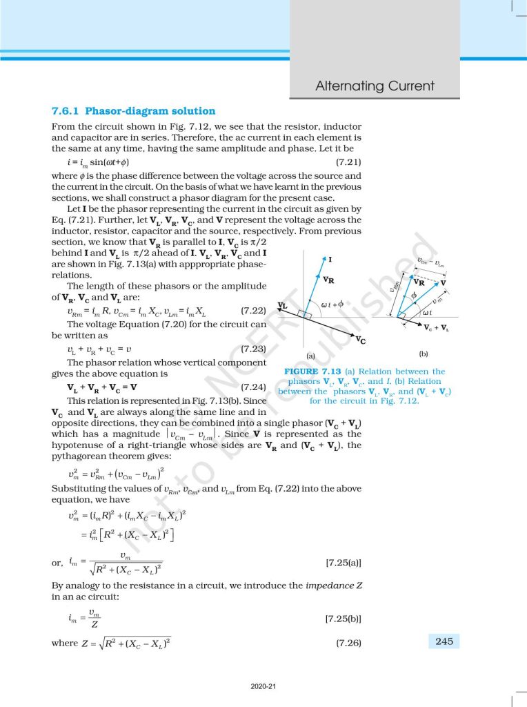 NCERT Book for Class 12 Physics Part 1 – (Chapter 7 – Alternating Current)