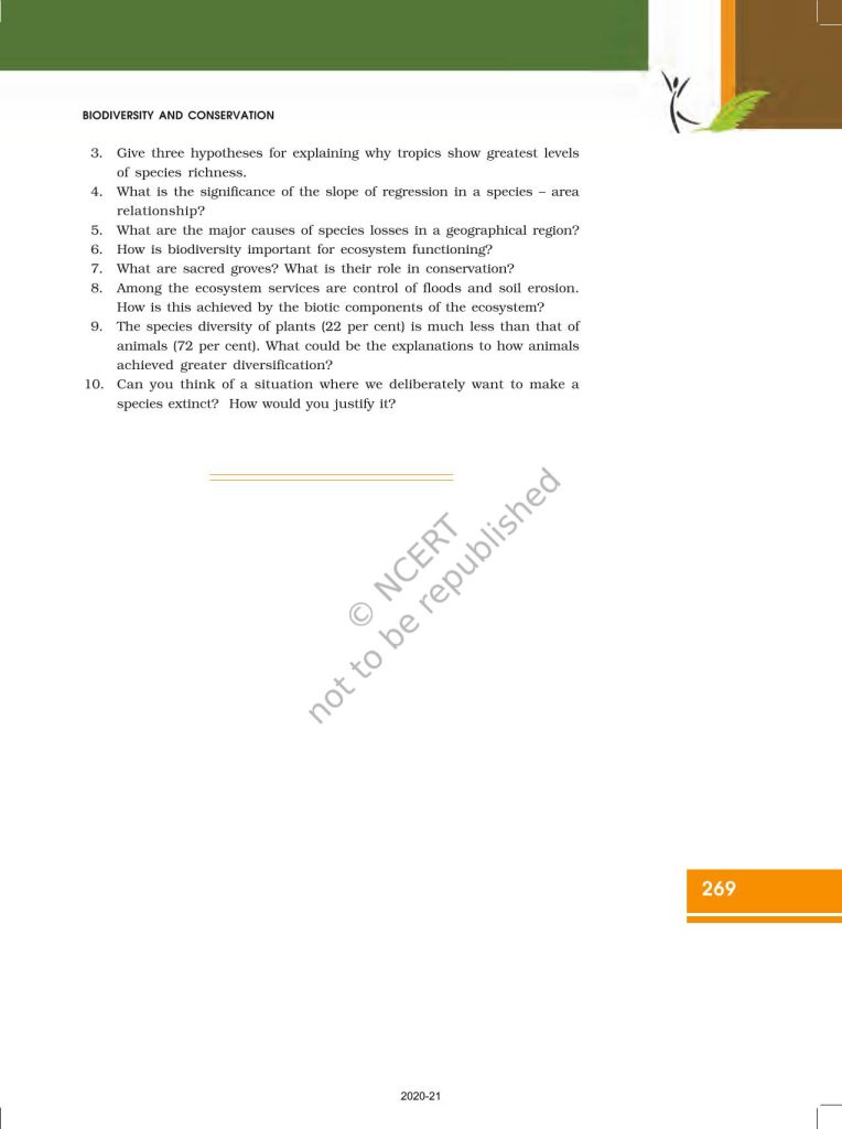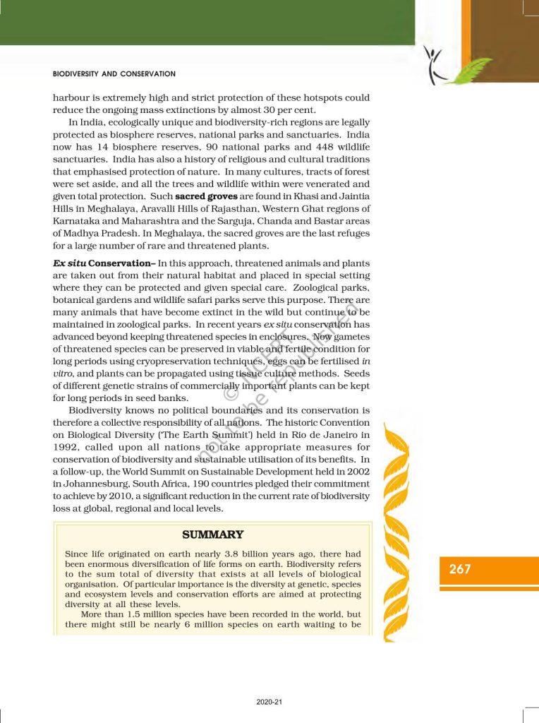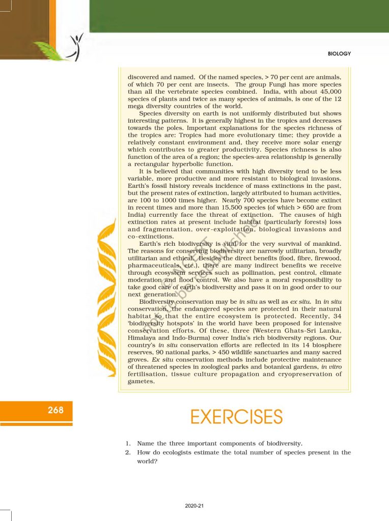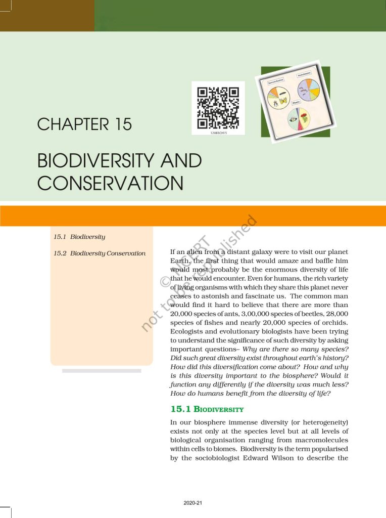 The chapter Biodiversity and Conservation explains the variety of life on Earth and the importance of protecting it. It discusses different levels of biodiversity, including genetic diversity, species diversity, and ecosystem diversity. The chapter also highlights the causes of biodiversity loss such as habitat destruction, pollution, climate change, and overexploitation of resources. In addition, it explains the importance of conservation through methods like in-situ conservation (national parks, wildlife sanctuaries, biosphere reserves) and ex-situ conservation (zoos, botanical gardens, seed banks). Understanding biodiversity and conservation helps promote sustainable development and protect natural ecosystems for future generations.These concepts are important for both Class 12 board exams and NEET preparation.