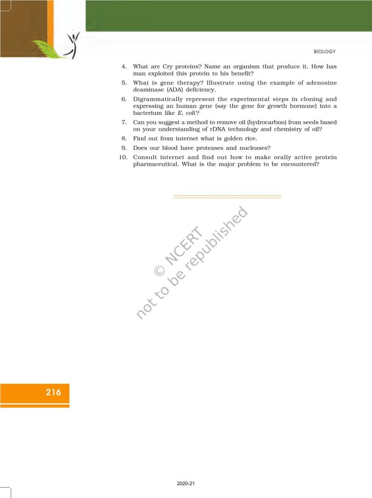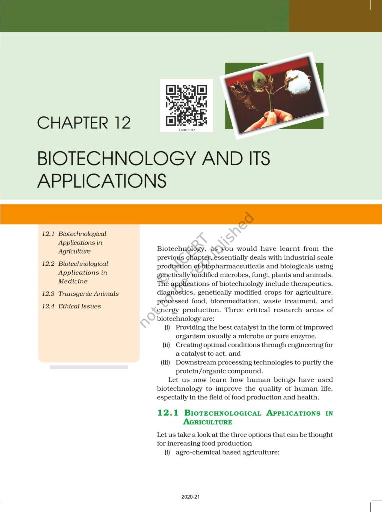 NCERT Book for Class 12 Biology – (Chapter 12 – Biotechnology and It’s Applications)