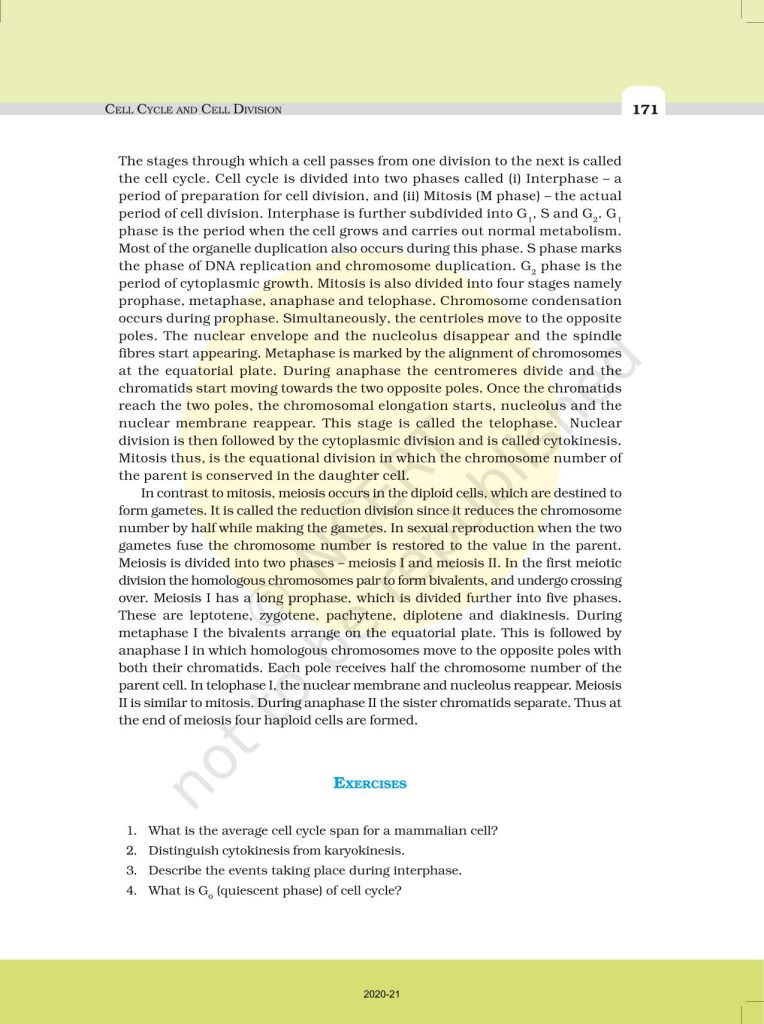 Cell cycle and cell division NCERT