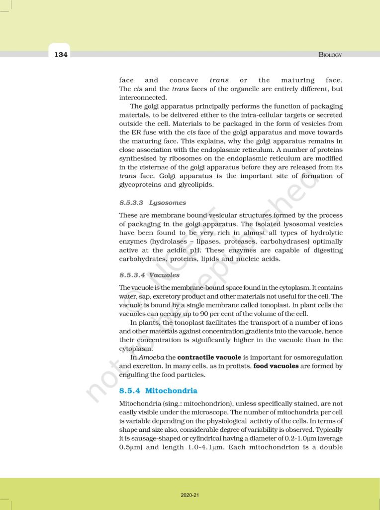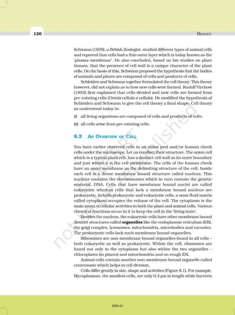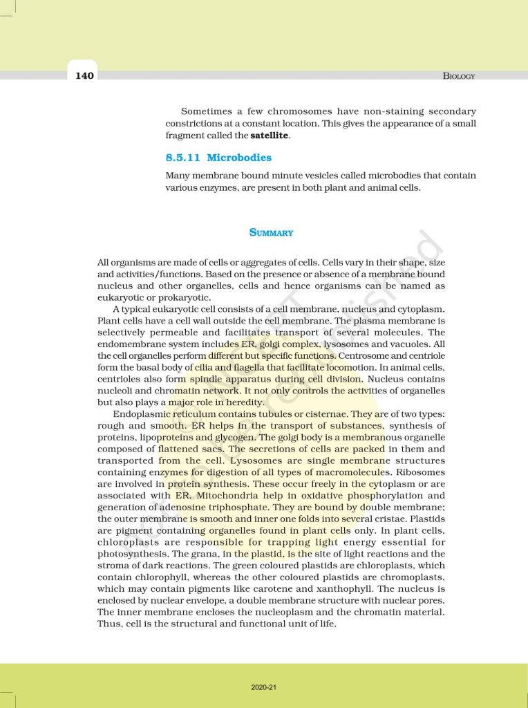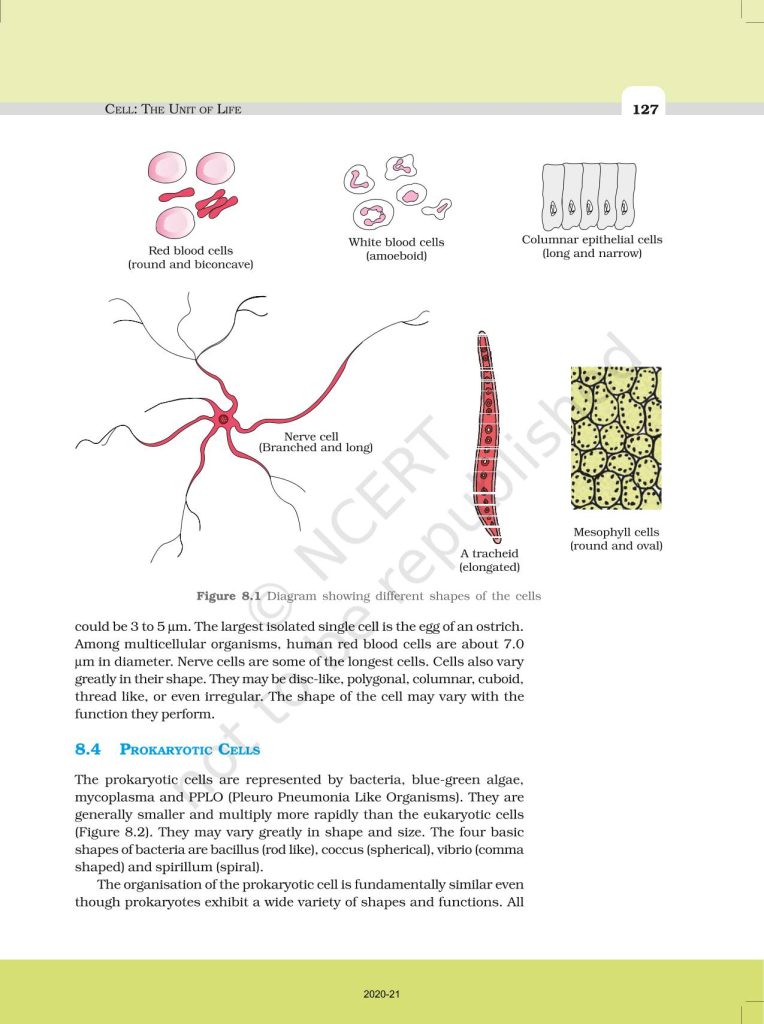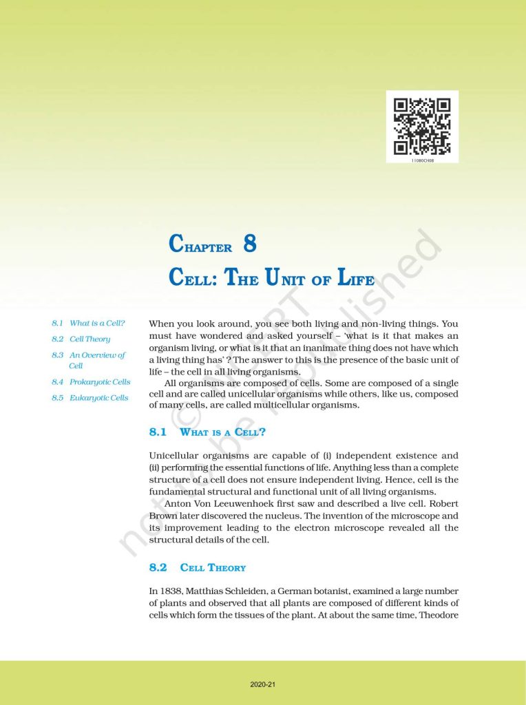 NCERT Book for Class 11 Biology – (Chapter 8 – Cell: The Unit of Life)