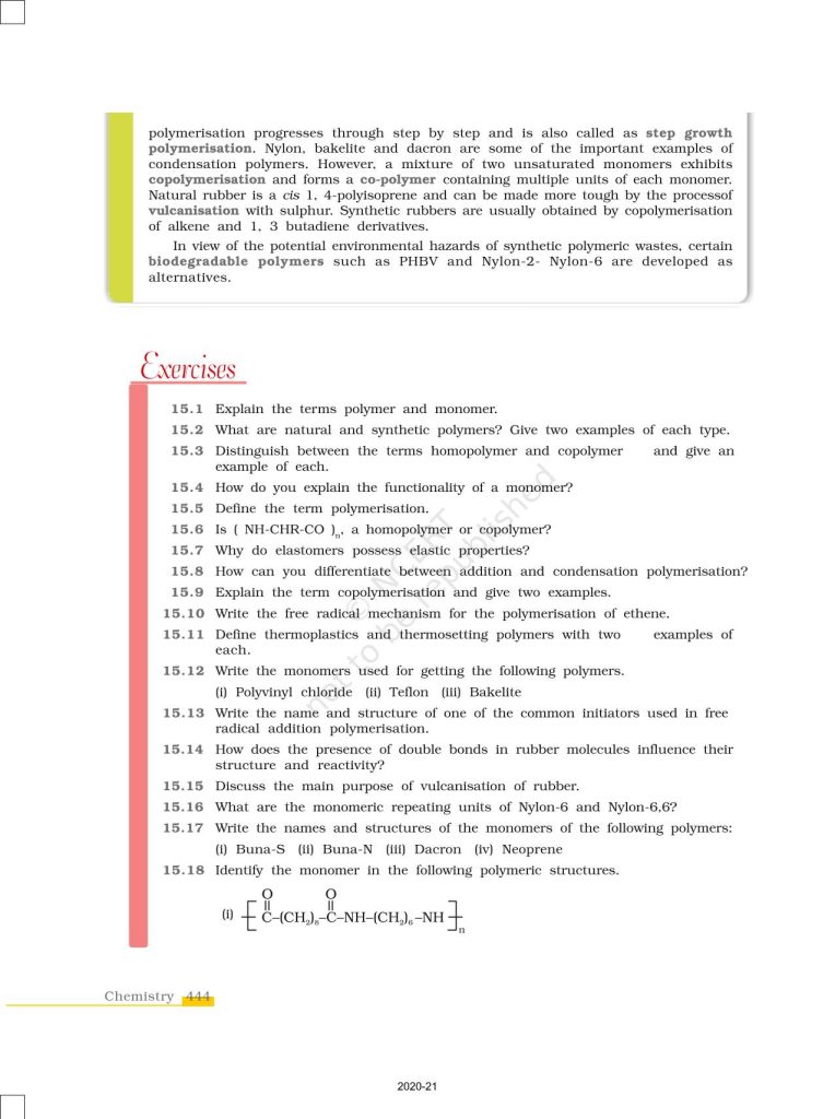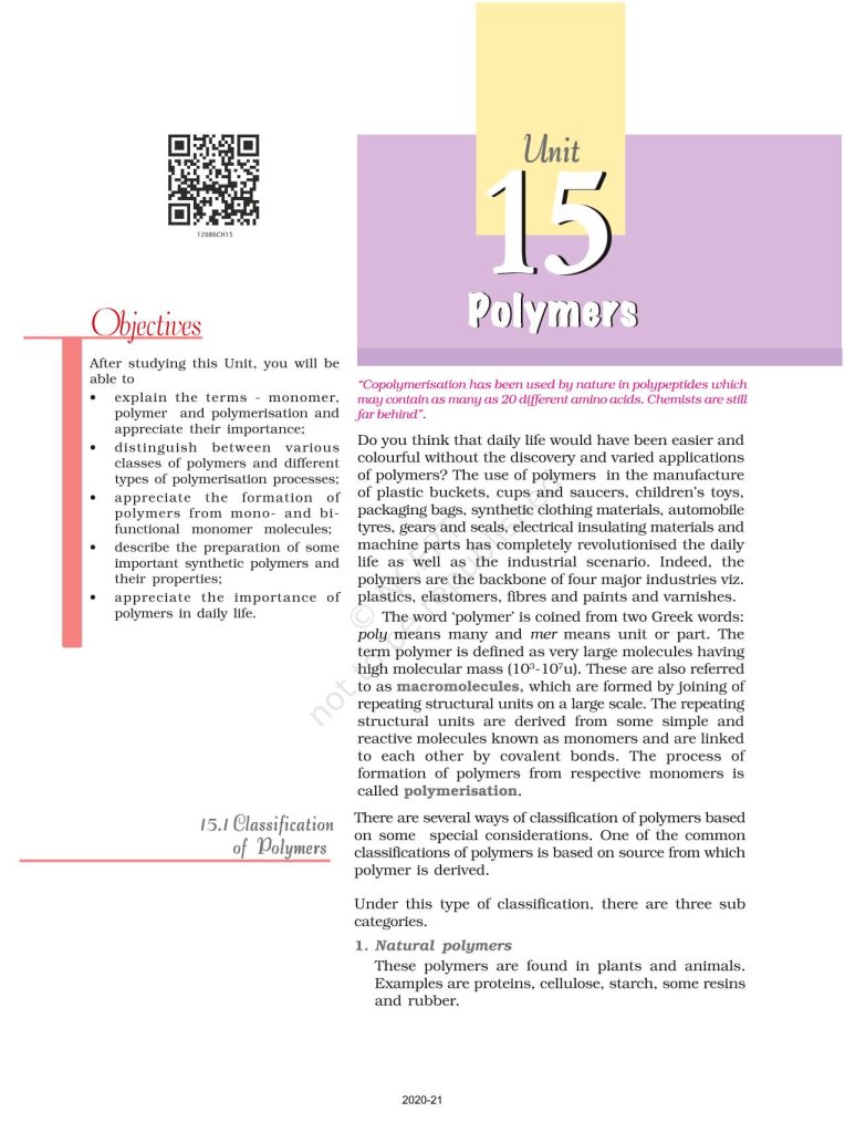 Students learn about important examples like polythene, nylon, polyester, and rubber, along with their preparation and properties. The chapter also highlights the uses of polymers in daily life, industries, and environmental concerns related to plastic waste. Understanding polymers is important for Class 12 board exams and competitive exams like NEET and JEE.