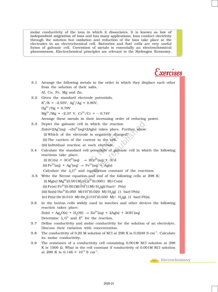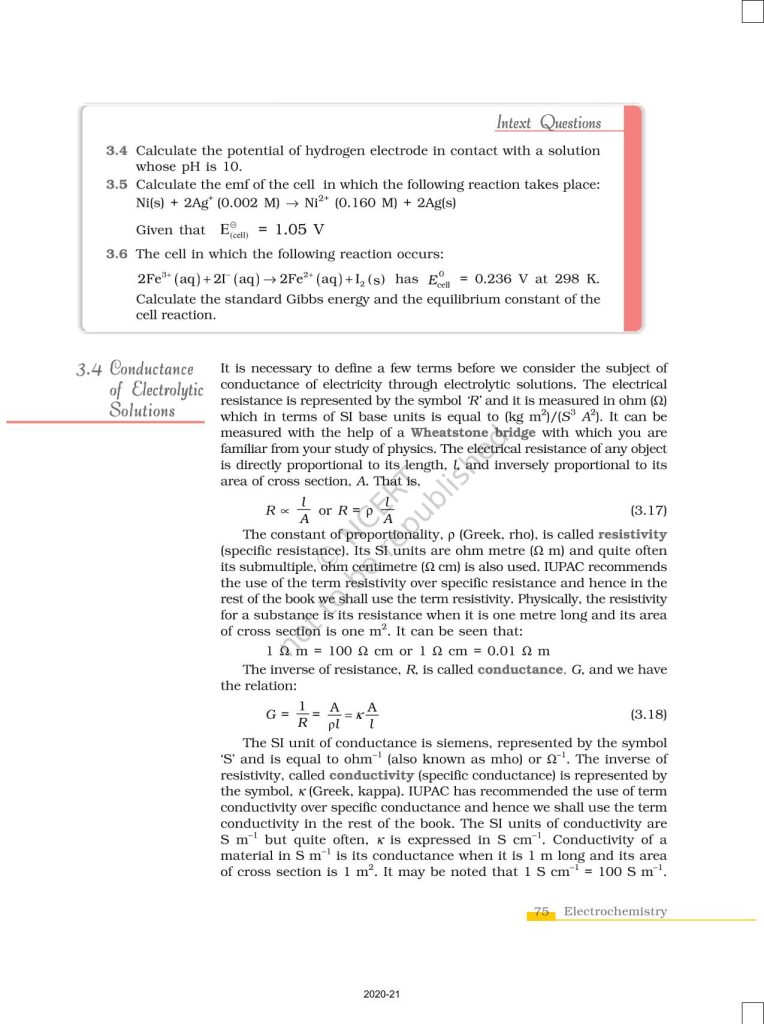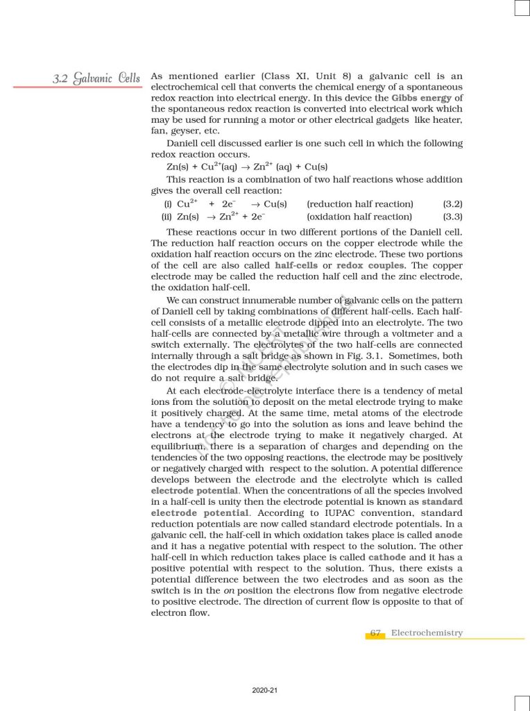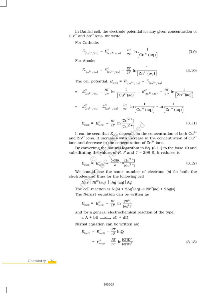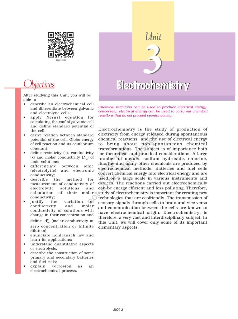 NCERT Book for Class 12 Chemistry Part 1 – (Chapter 3 – Electrochemistry)