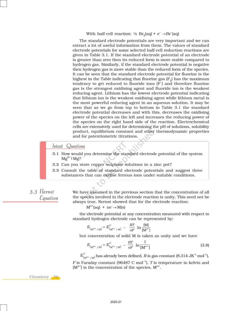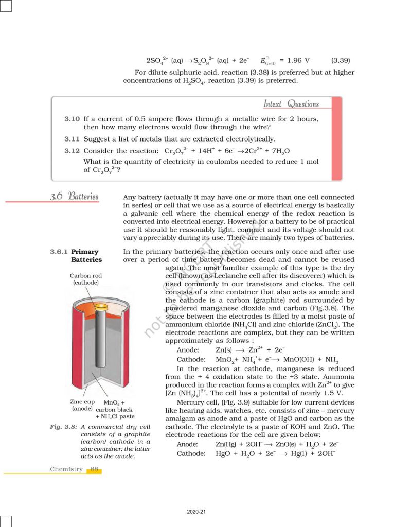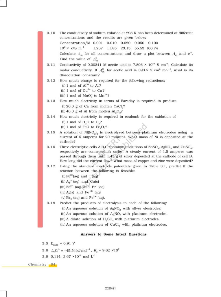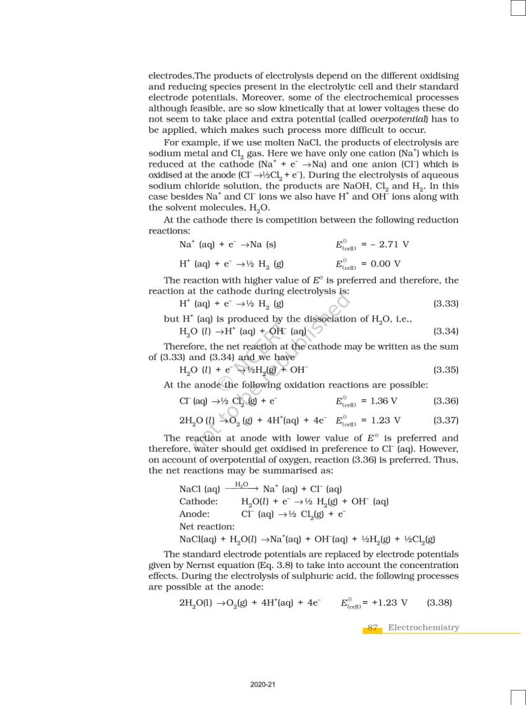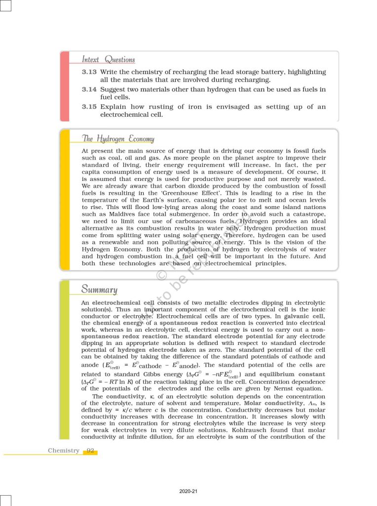 NCERT Book for Class 12 Chemistry Part 1 – (Chapter 3 – Electrochemistry)
