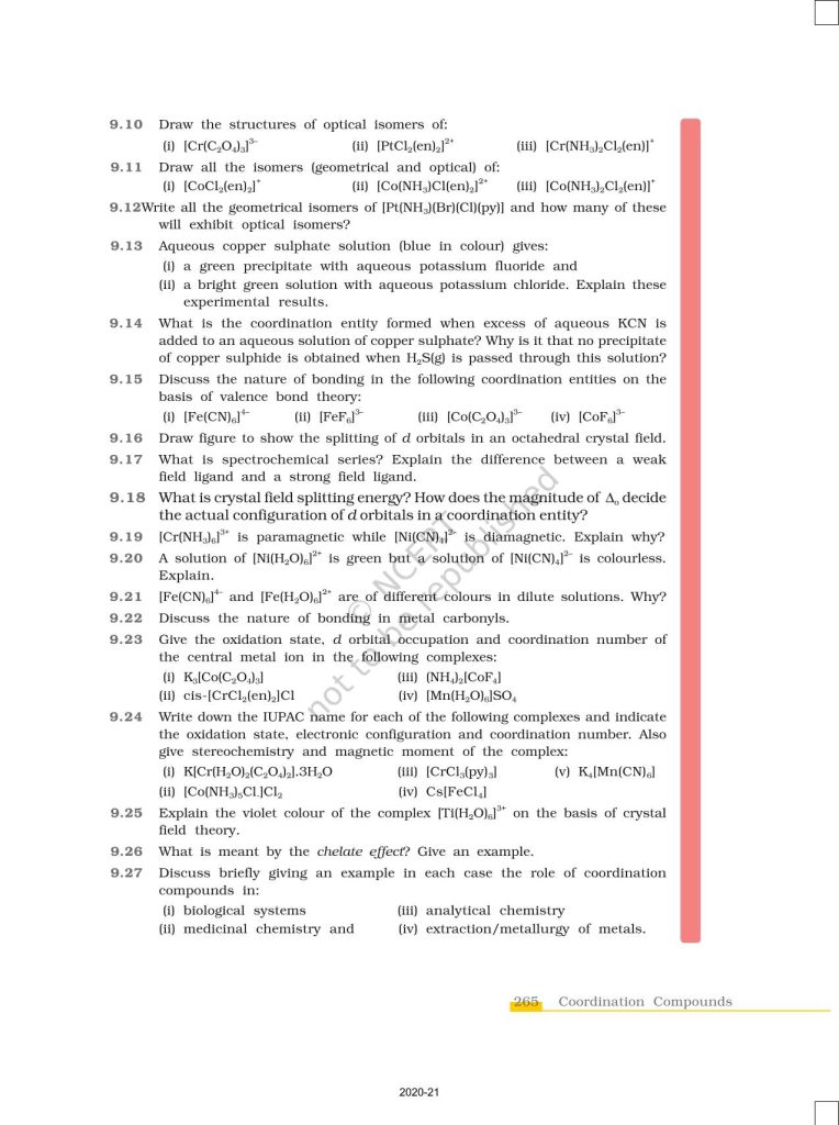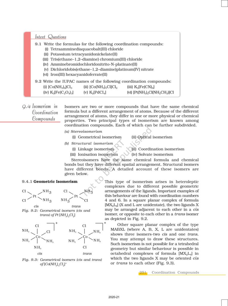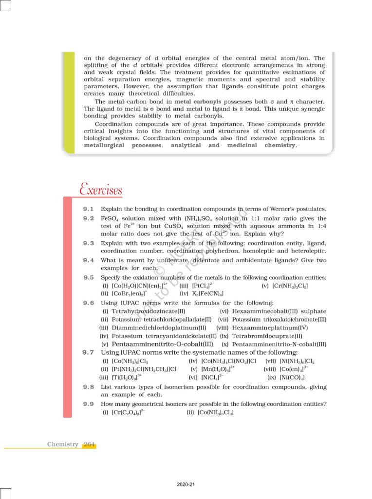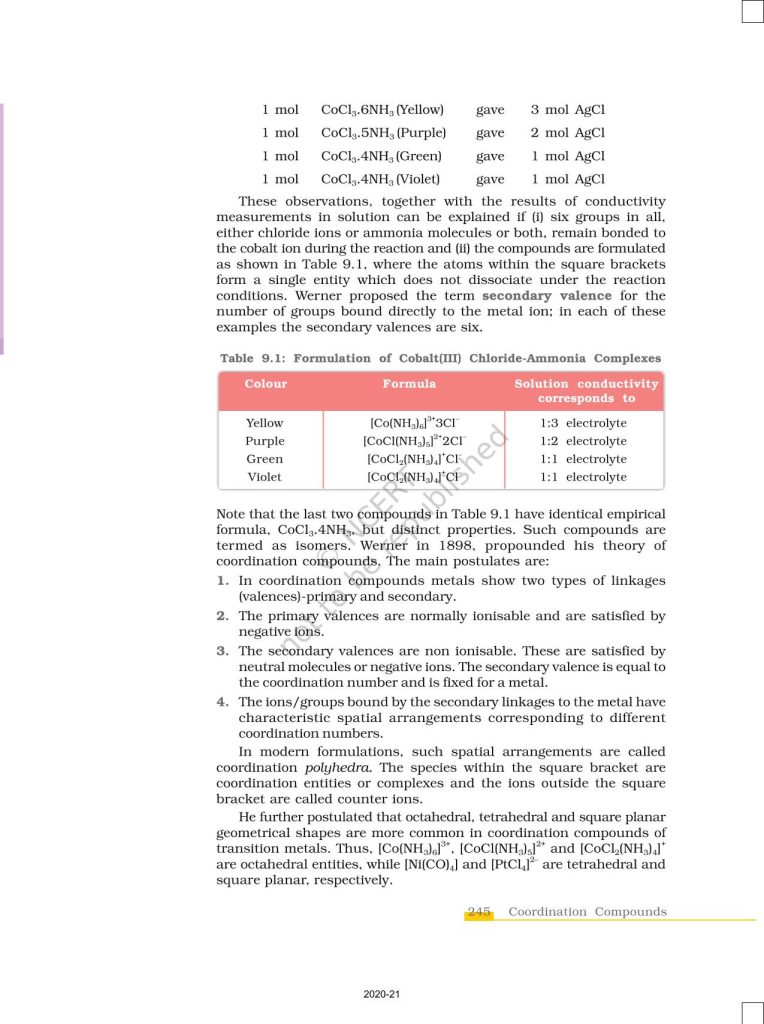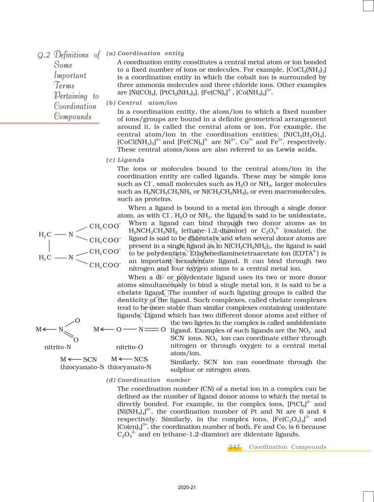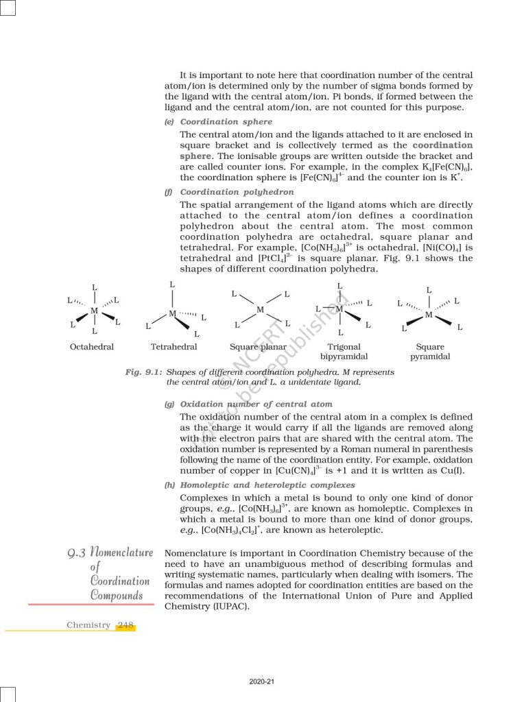 Coordination compounds are chemical compounds in which a central metal atom or ion is bonded to surrounding molecules or ions called ligands through coordinate covalent bonds. The metal ion and the ligands together form a coordination complex, where the number of ligand atoms attached to the metal is called the coordination number. These compounds can have different geometrical shapes such as octahedral, tetrahedral, or square planar, depending on the arrangement of ligands around the metal ion. Coordination compounds are very important in chemistry because they help explain metal–ligand bonding and have many applications in analytical chemistry, medicine, catalysis, electroplating, and biological systems, such as the iron-containing hemoglobin molecule in blood.Important for Class 12 board exams and competitive exams like NEET and JEE.