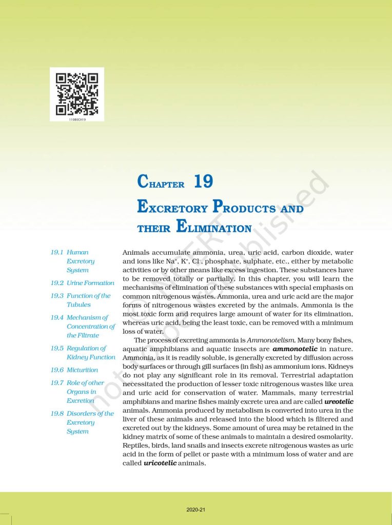 Chapter 19 – Excretory Products And Their Elimination