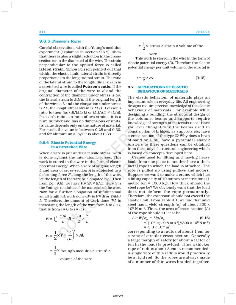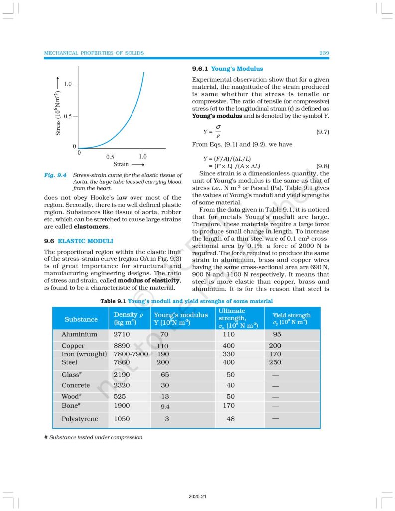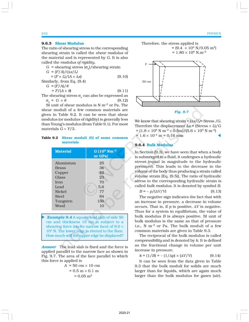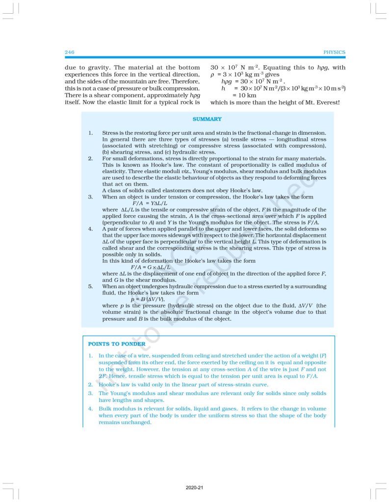 The chapter also covers Hooke’s Law, Young’s modulus, bulk modulus, and shear modulus, along with the stress–strain relationship and elastic behavior of materials. These concepts are essential for understanding material strength and are highly important for CBSE board exams as well as competitive exams like NEET and JEE.