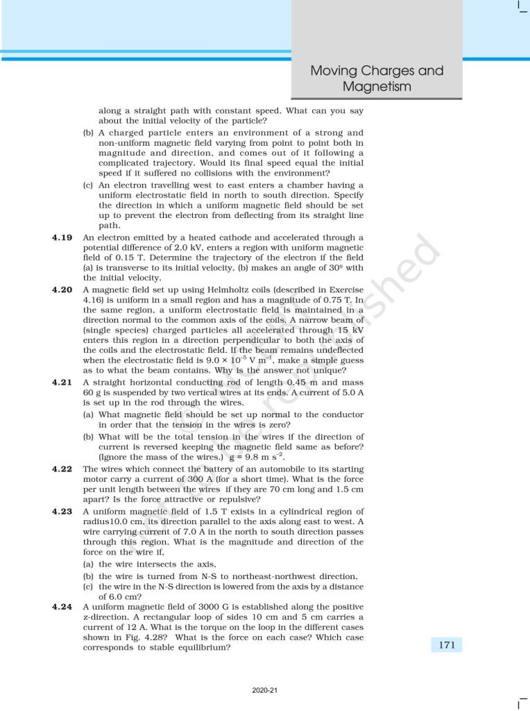 Chapter 4 – Moving Charges and Magnetism