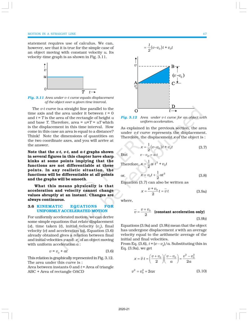 The chapter also covers uniform and non-uniform motion, graphical analysis using position–time and velocity–time graphs, and the three important equations of motion for uniformly accelerated motion. These concepts form the foundation for advanced topics in mechanics and are highly important for CBSE board exams as well as competitive exams like NEET and JEE.