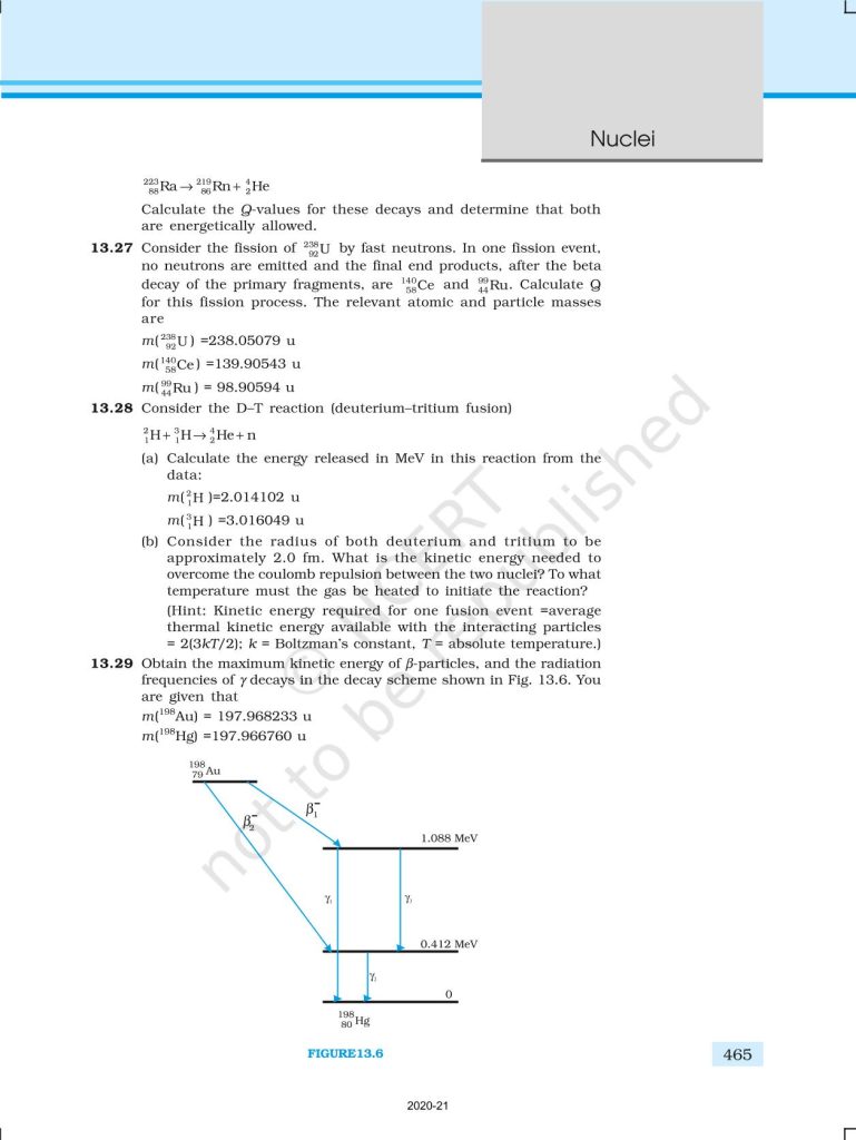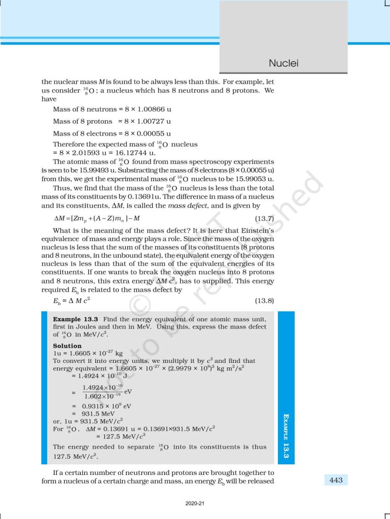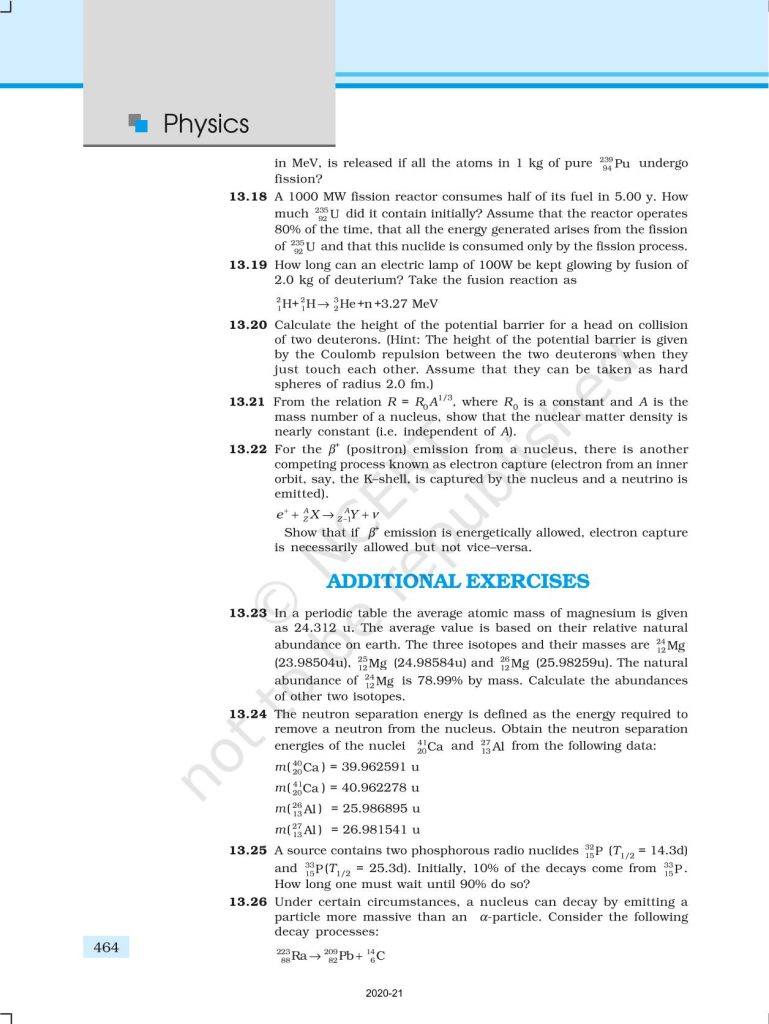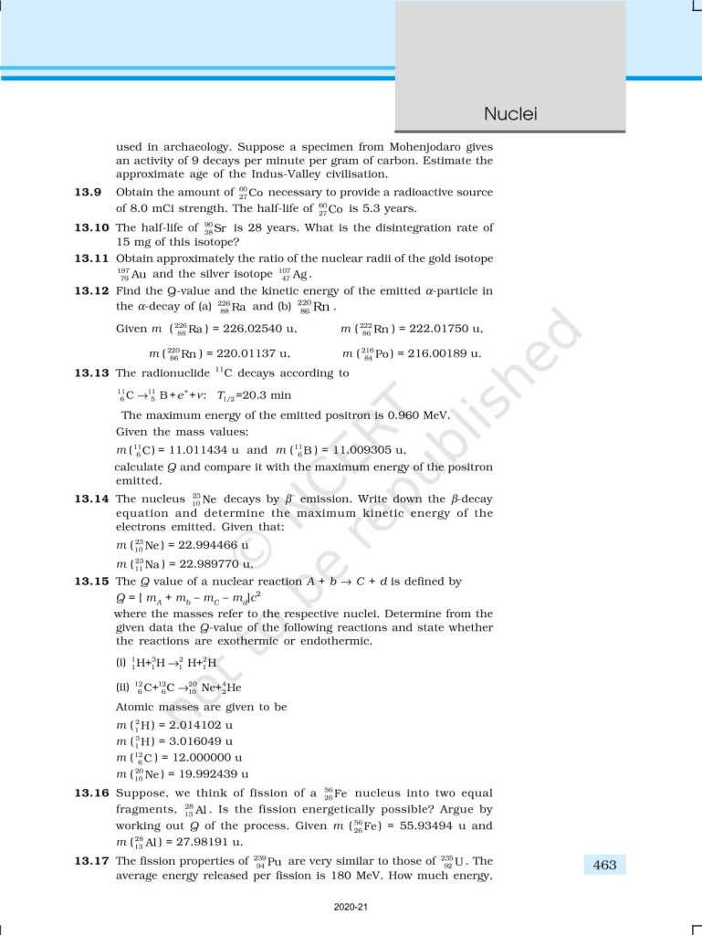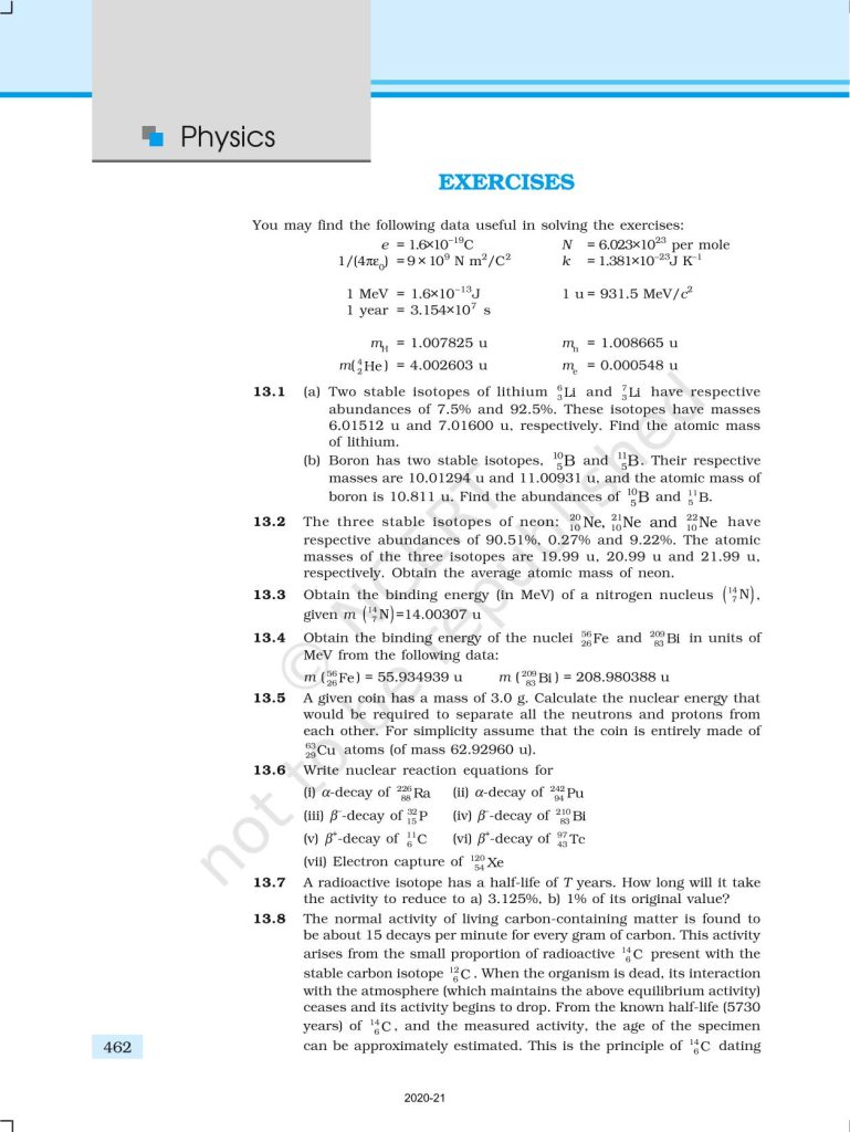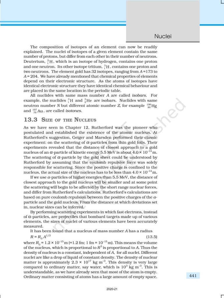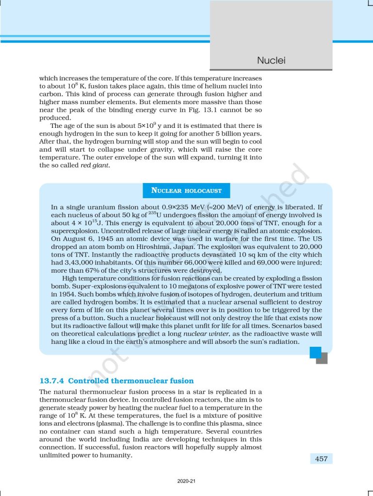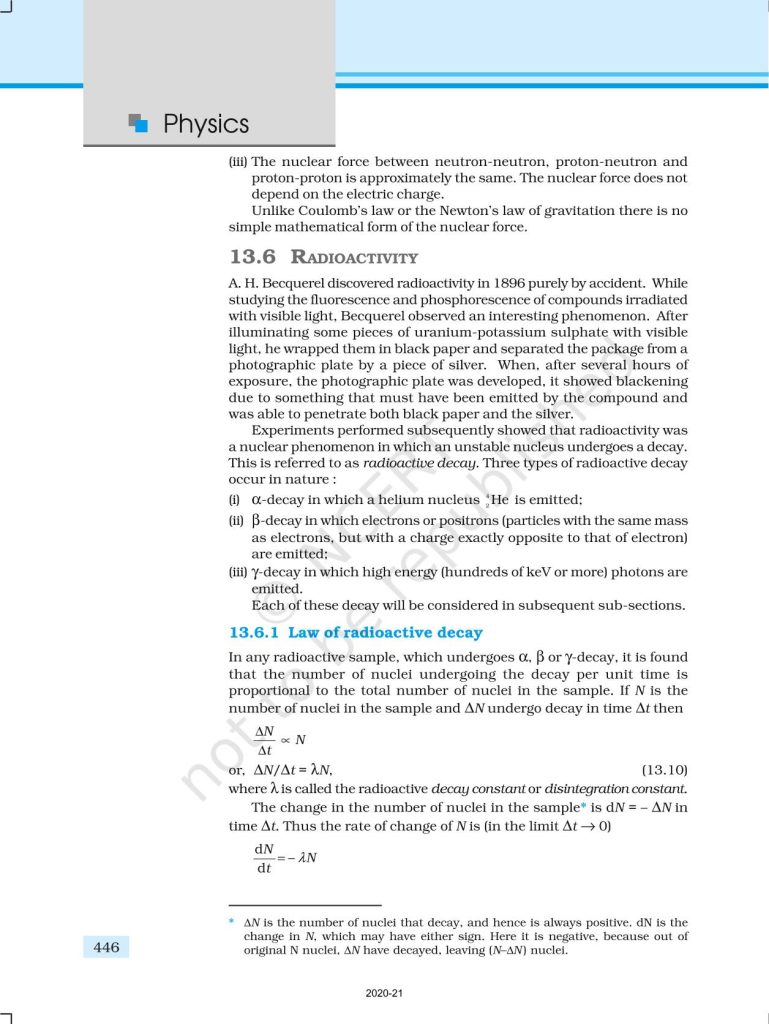 This chapter deals with the composition and properties of atomic nuclei, focusing on protons and neutrons (collectively called nucleons). It explains important concepts such as atomic mass, isotopes, isobars, and nuclear size. The chapter introduces the idea of binding energy, which is the energy required to hold the nucleus together, and highlights its role in nuclear stability. It also covers mass-energy equivalence and nuclear reactions like radioactive decay, including alpha, beta, and gamma emissions. Additionally, processes such as nuclear fission and fusion are discussed, explaining how vast amounts of energy are released in these reactions. This chapter provides a fundamental understanding of nuclear physics and its practical applications in energy production and medicine. And it is important for Class 12 board exams and competitive exams like NEET and JEE.