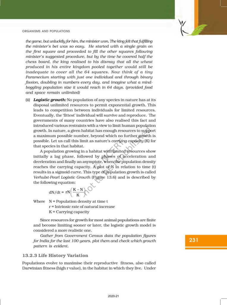 NCERT Book for Class 12 Biology – (Chapter 13 – Organisms And Populations)