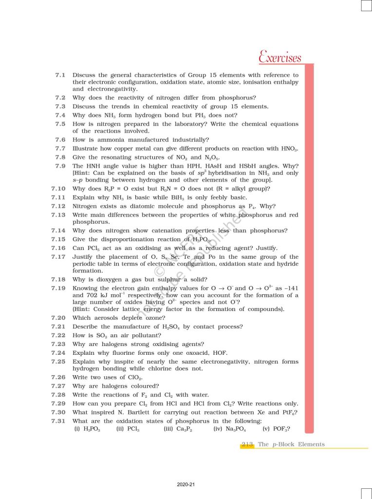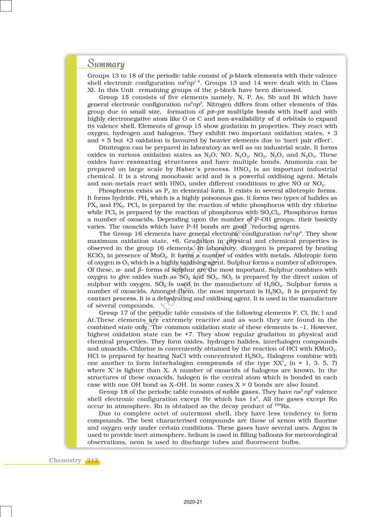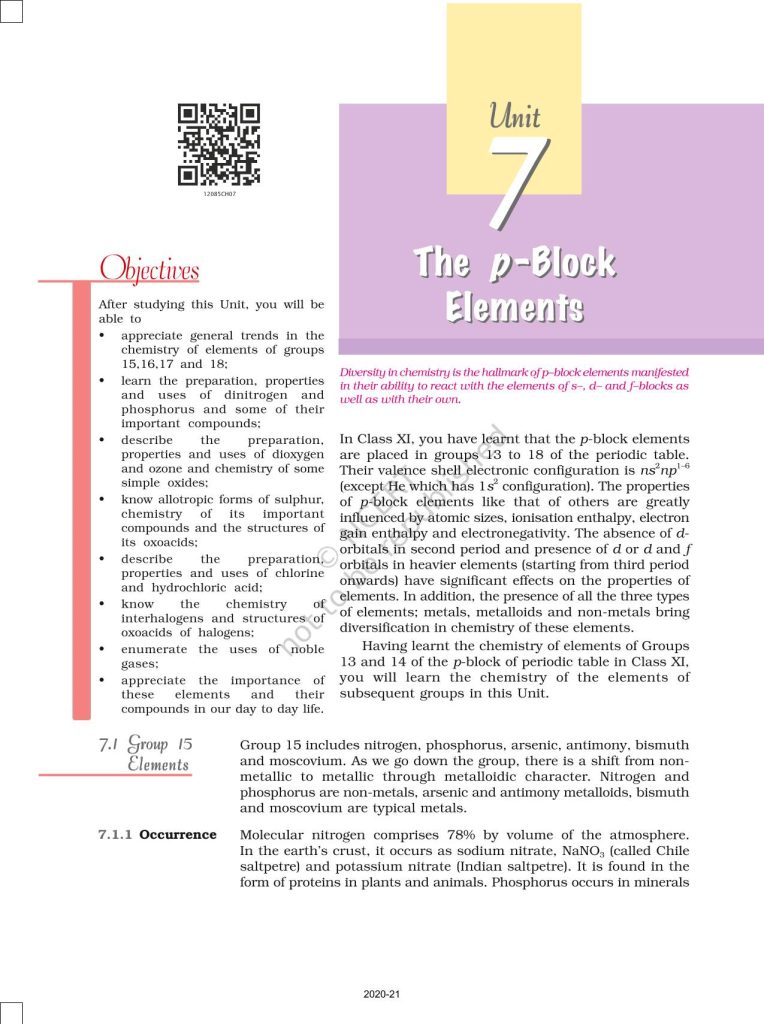 Students also learn about important concepts such as allotropy, oxidation states, trends in chemical properties, and reactions of p-block elements. Various compounds like ammonia, nitric acid, ozone, sulfuric acid, and hydrochloric acid are also explained in detail. Understanding this chapter helps students learn about the behavior of non-metals and noble gases and is important for Class 12 board exams and competitive exams like NEET and JEE.