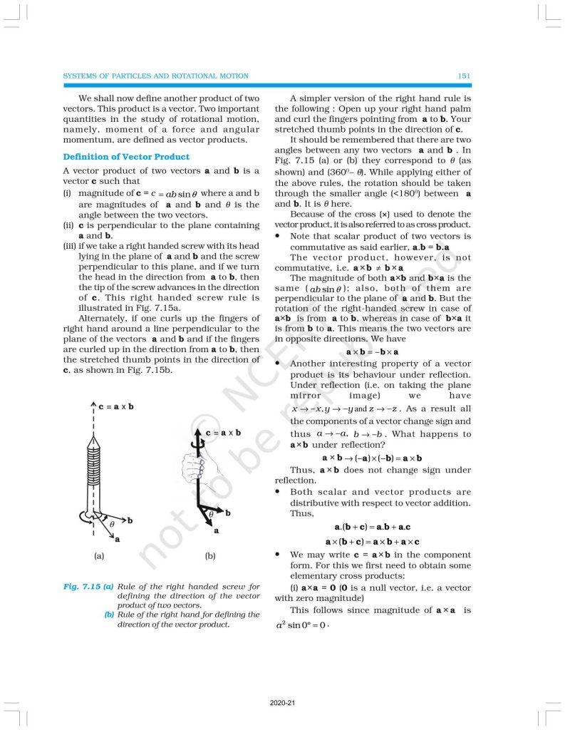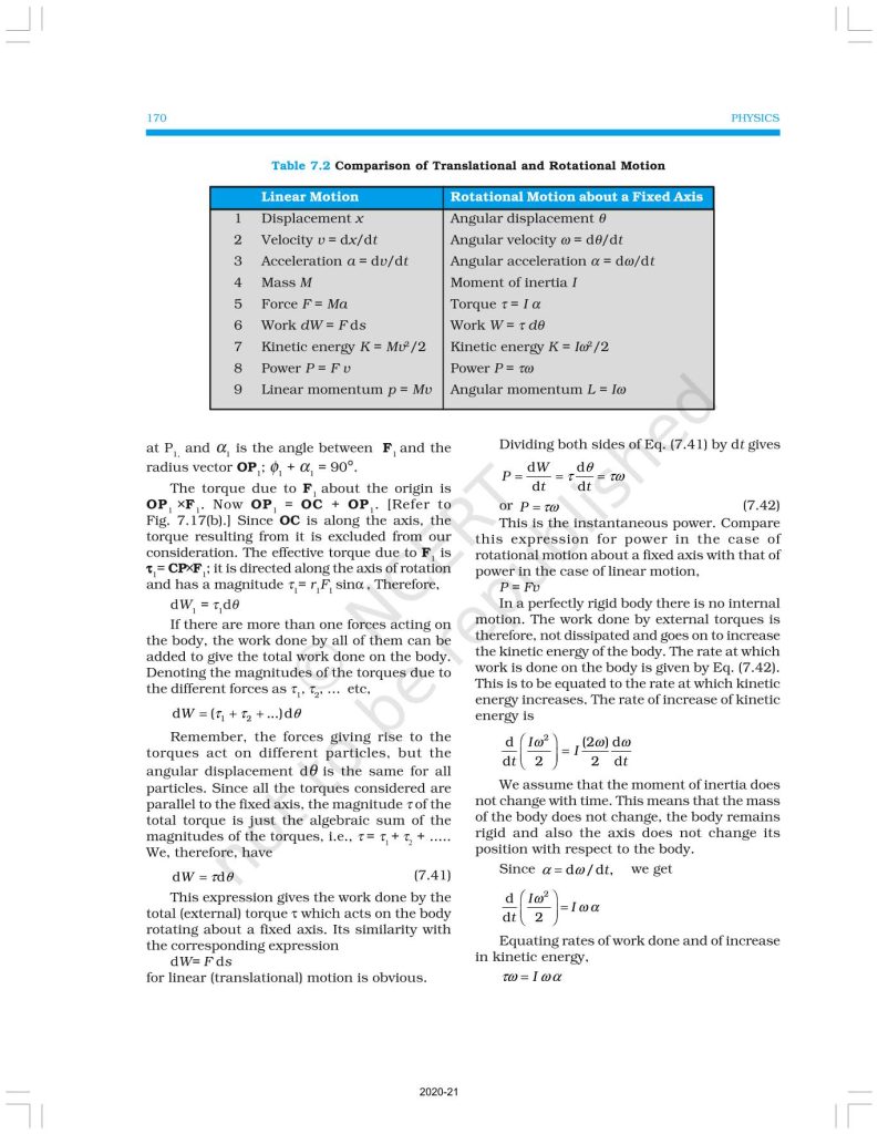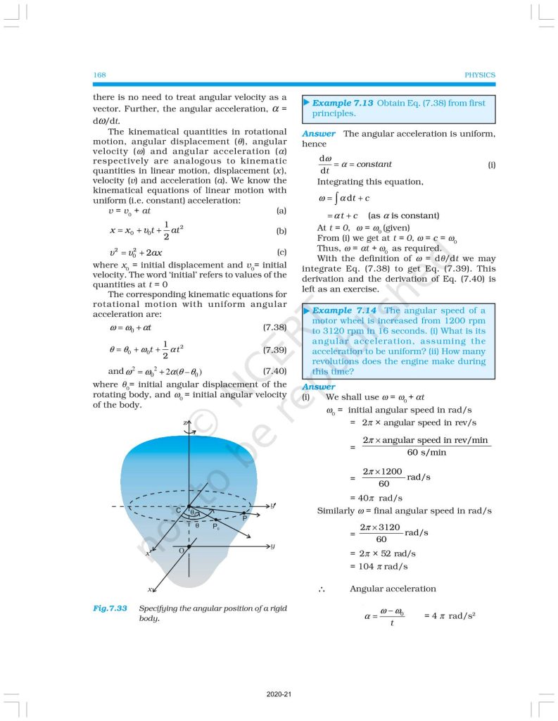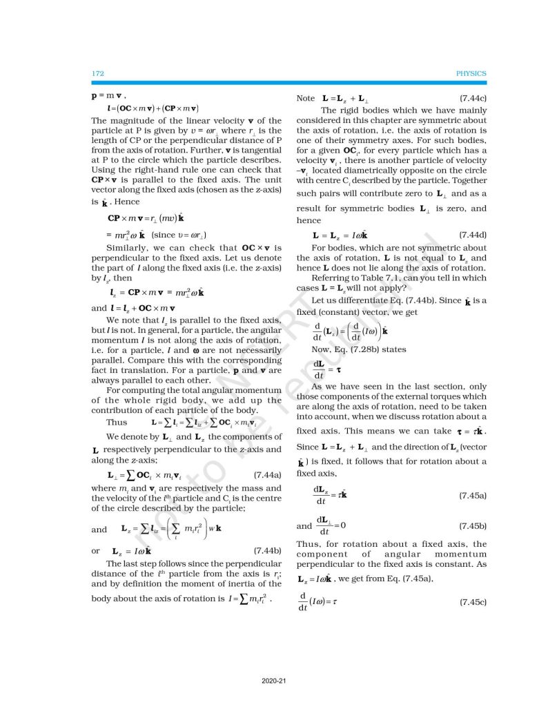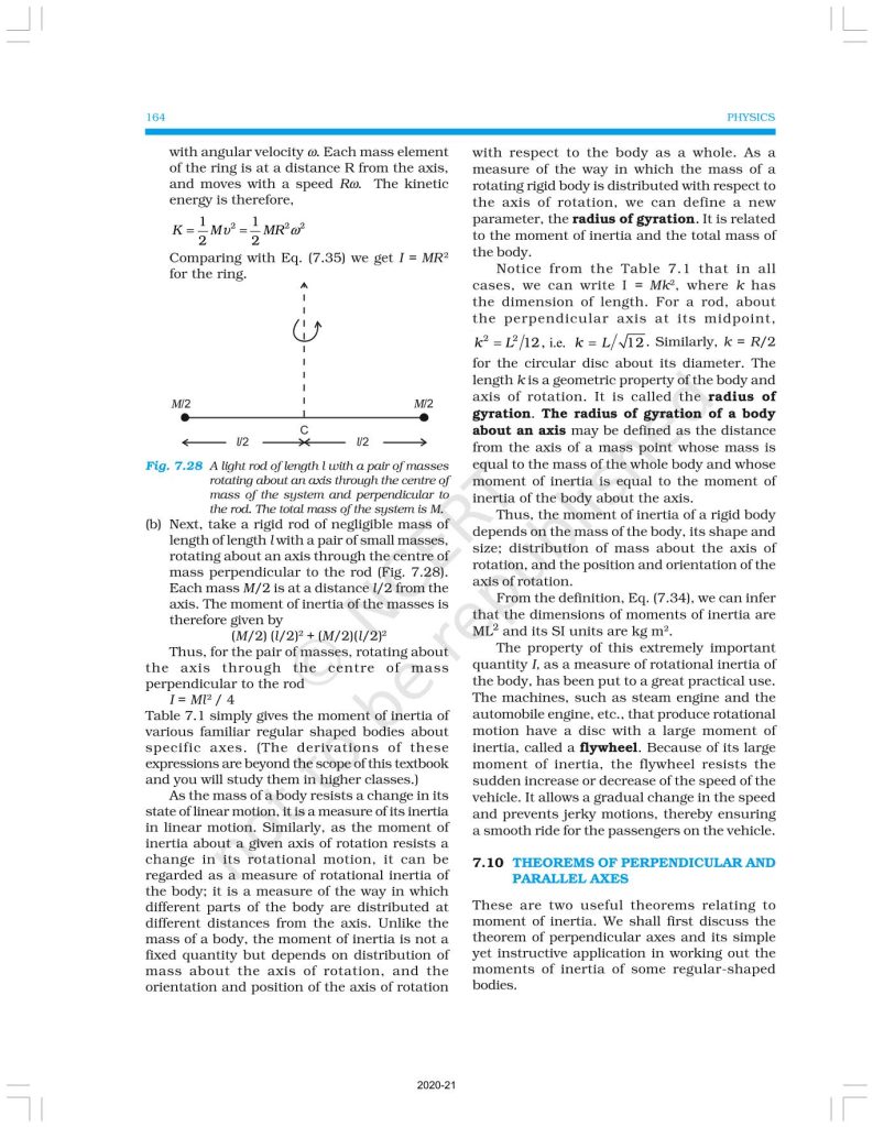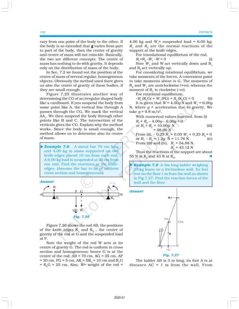 Chapter 7 – System of Particles and Rotational Motion explains the motion of systems containing multiple particles and objects undergoing rotation. It introduces concepts such as center of mass, linear momentum, and motion of a system of particles under external forces.