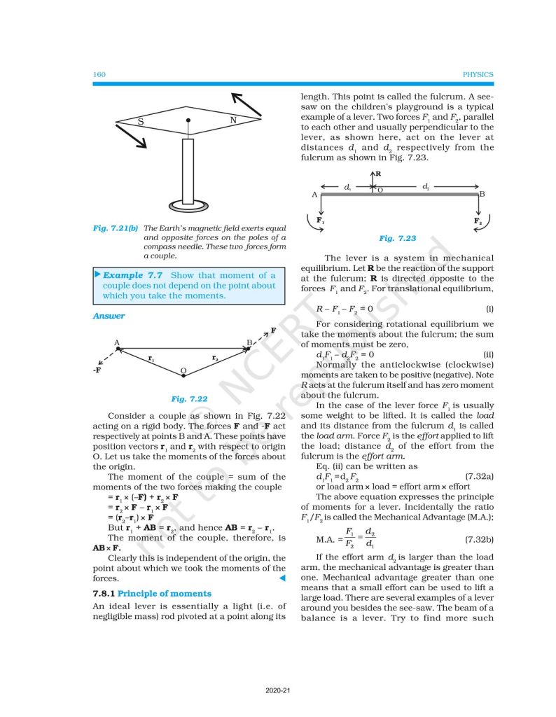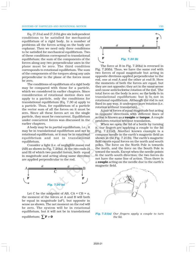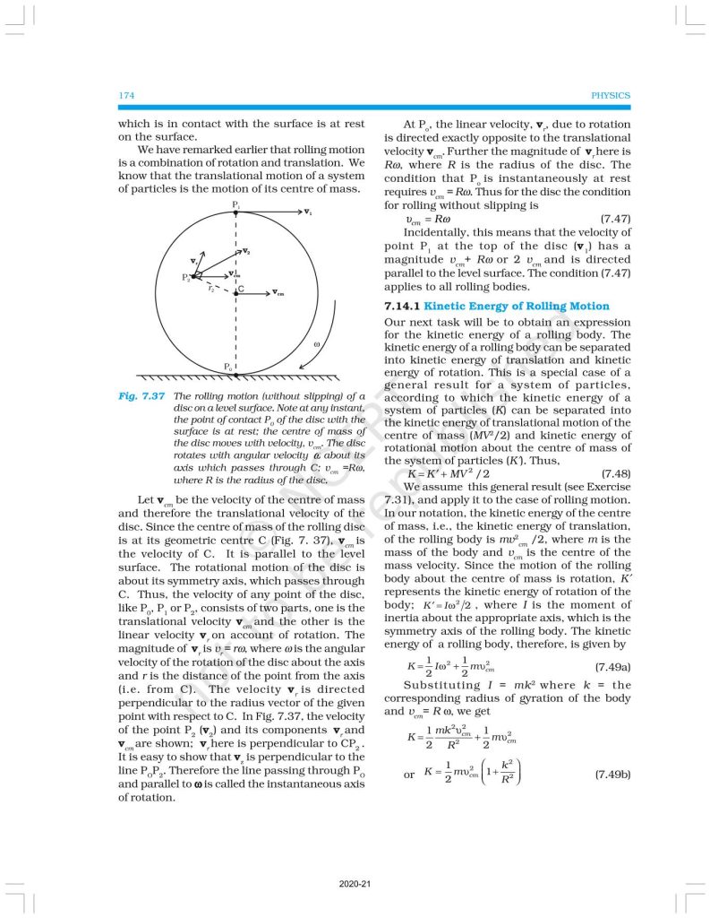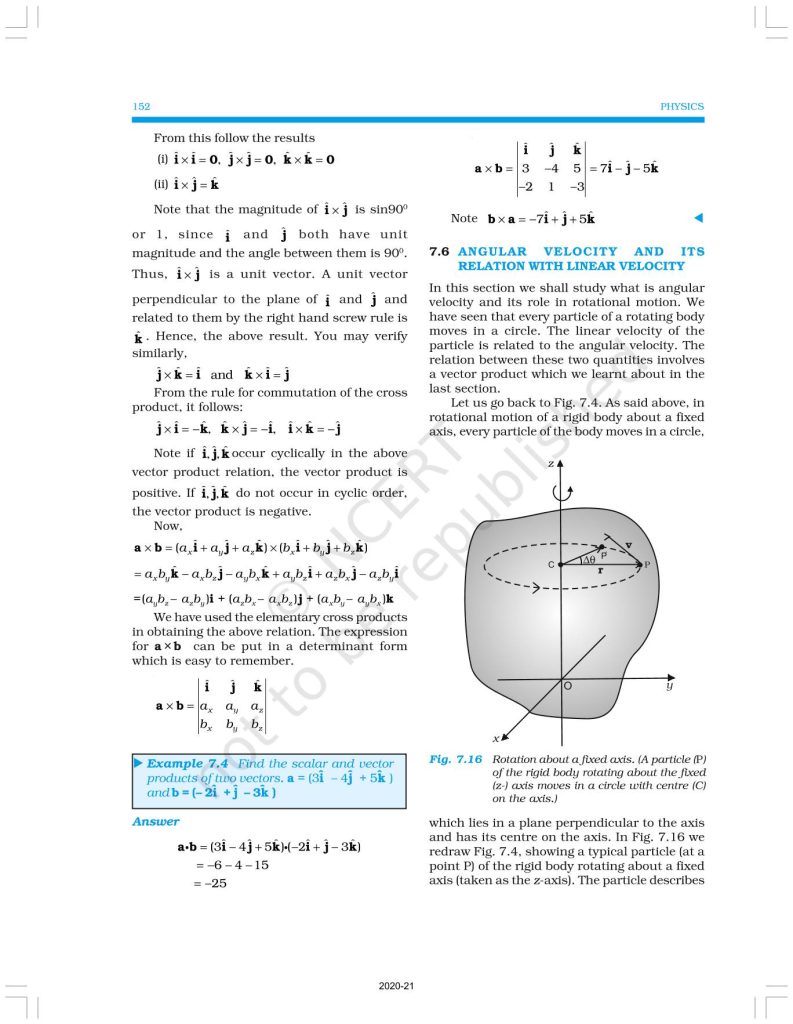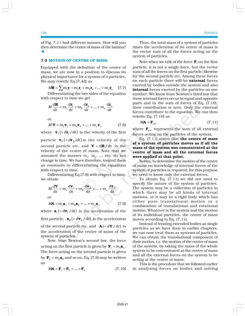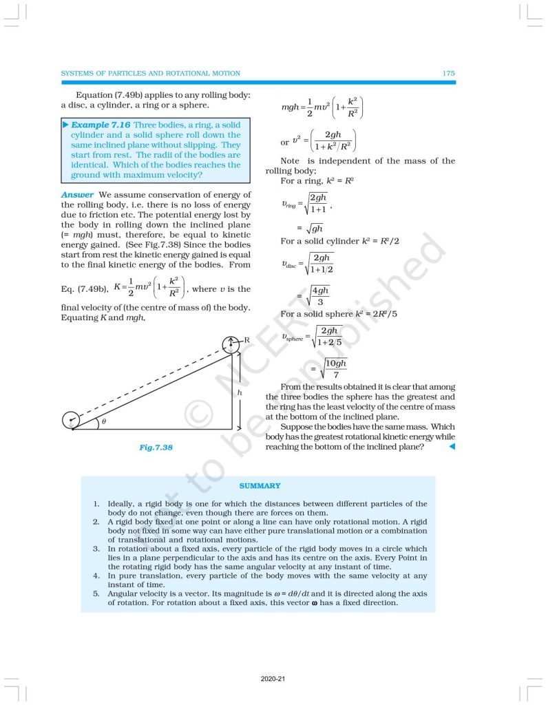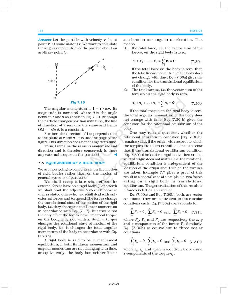 Chapter 7 – System of Particles and Rotational Motion explains the motion of systems containing multiple particles and objects undergoing rotation. It introduces concepts such as center of mass, linear momentum, and motion of a system of particles under external forces.