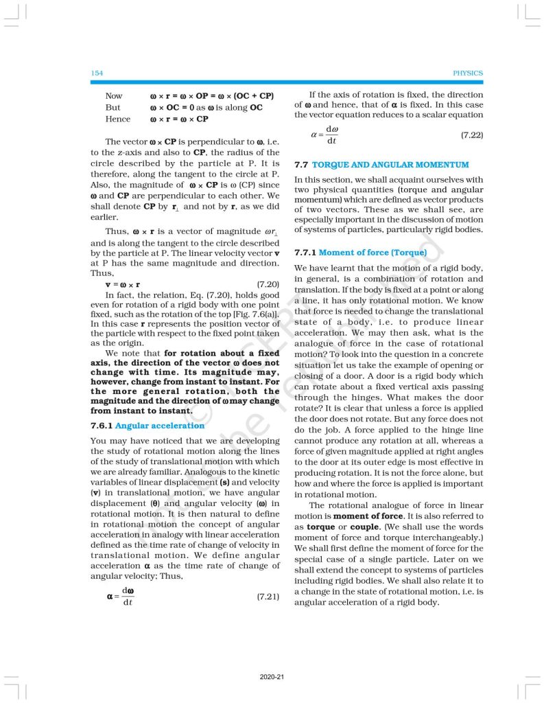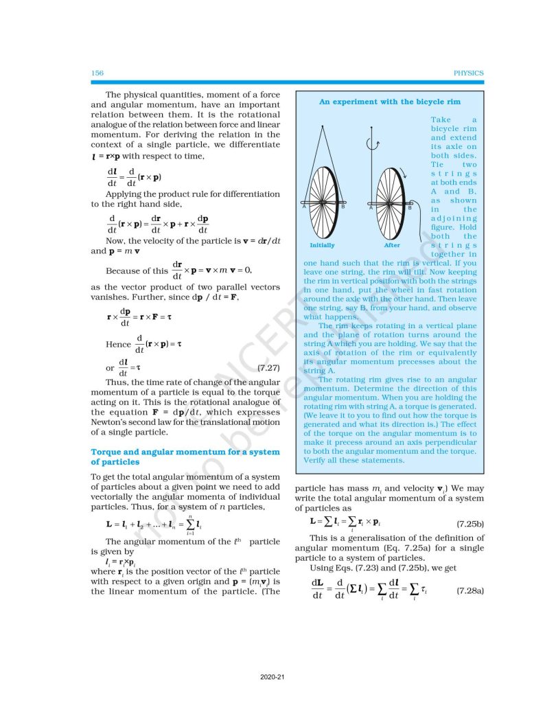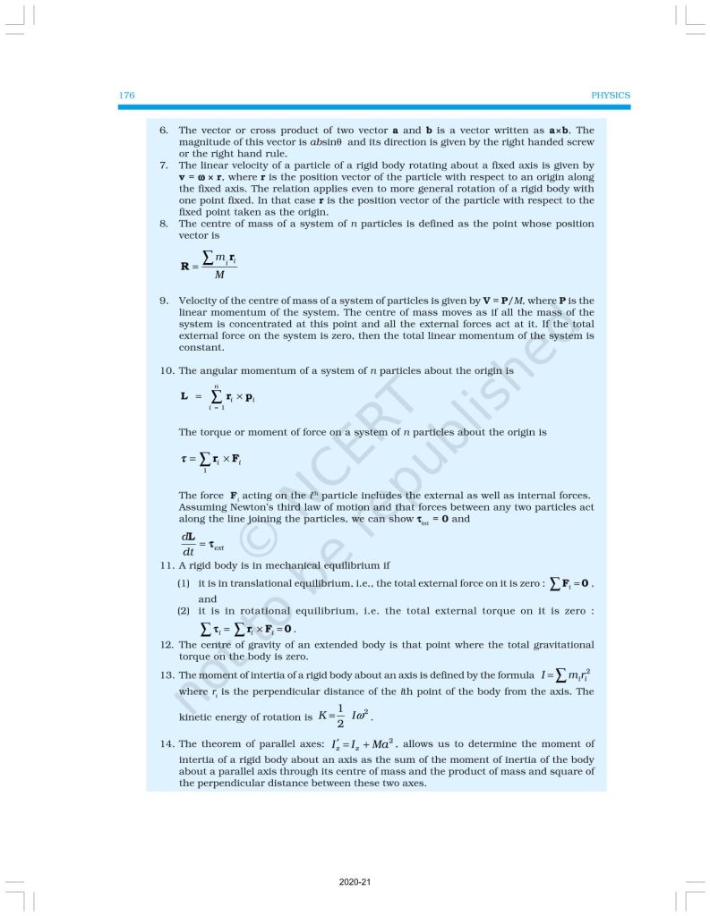 The chapter also covers rotational motion, including torque, moment of inertia, angular velocity, angular momentum, and the conservation of angular momentum. These concepts help in understanding the rotational behavior of rigid bodies and are highly important for CBSE board exams as well as competitive exams like NEET and JEE.