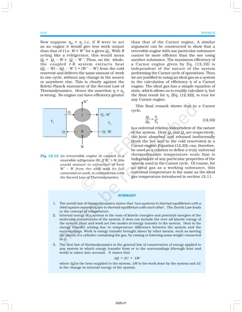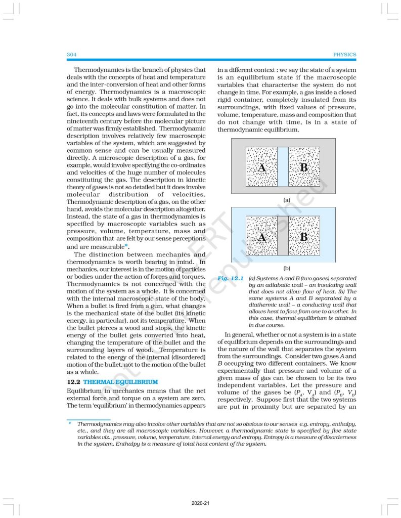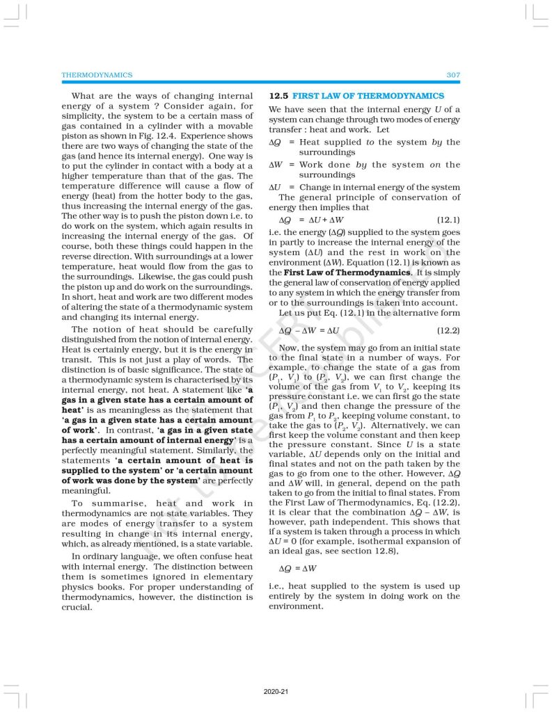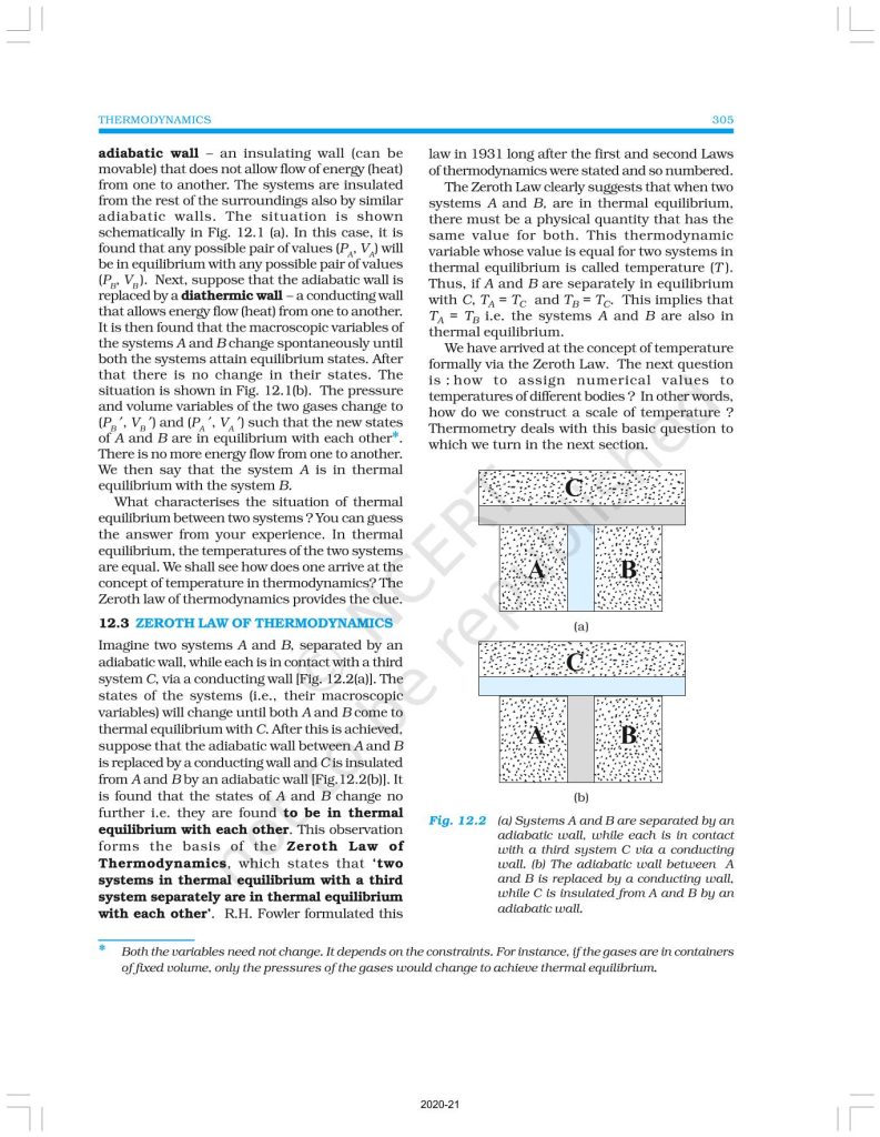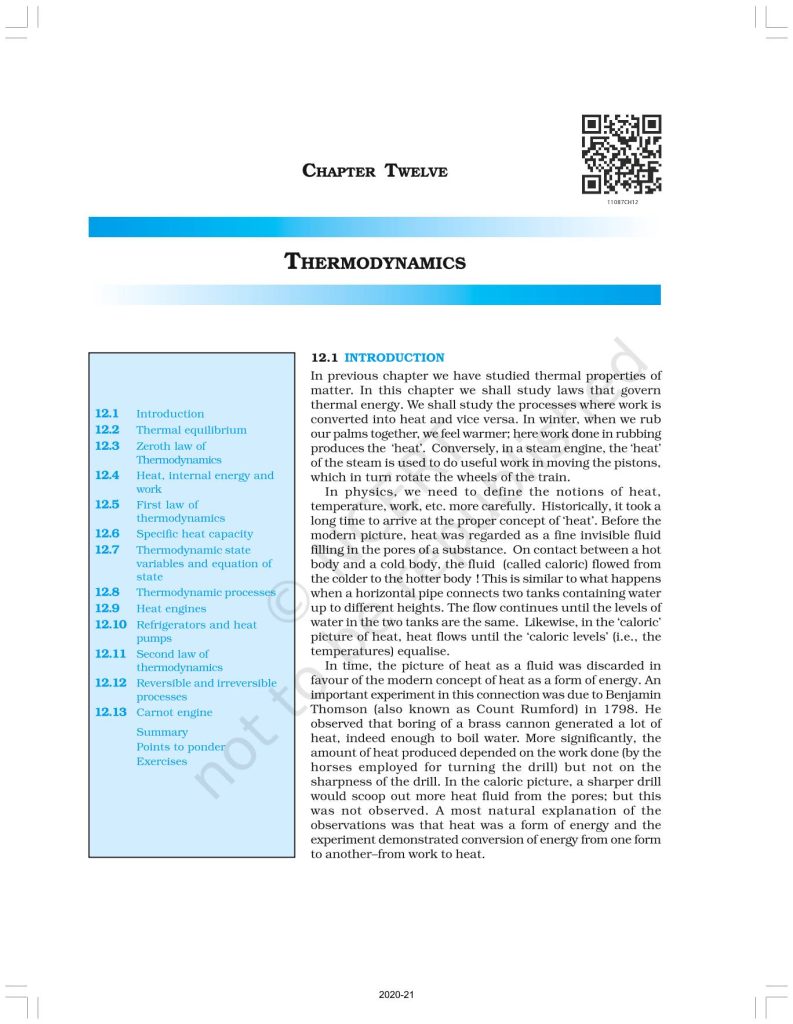 Chapter 12 – Thermodynamics explains the relationship between heat, work, and energy in physical systems. It introduces important concepts such as thermal equilibrium, system and surroundings, internal energy, and different thermodynamic processes like isothermal, adiabatic, isobaric, and isochoric processes.