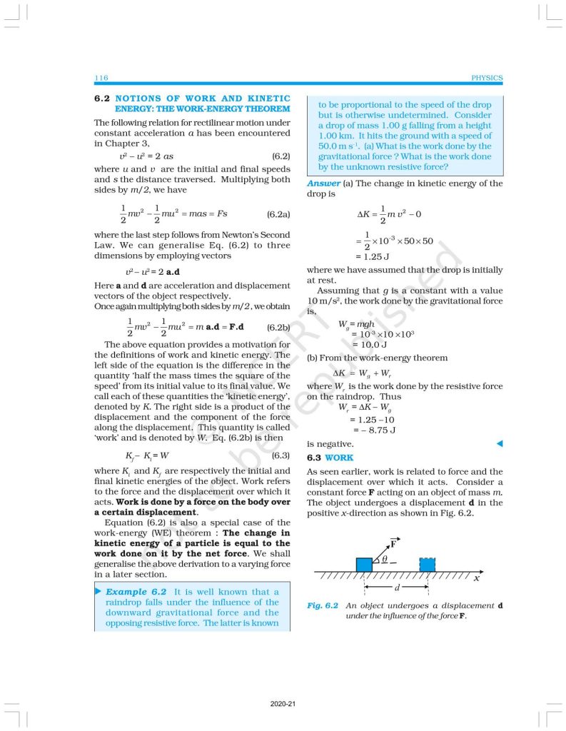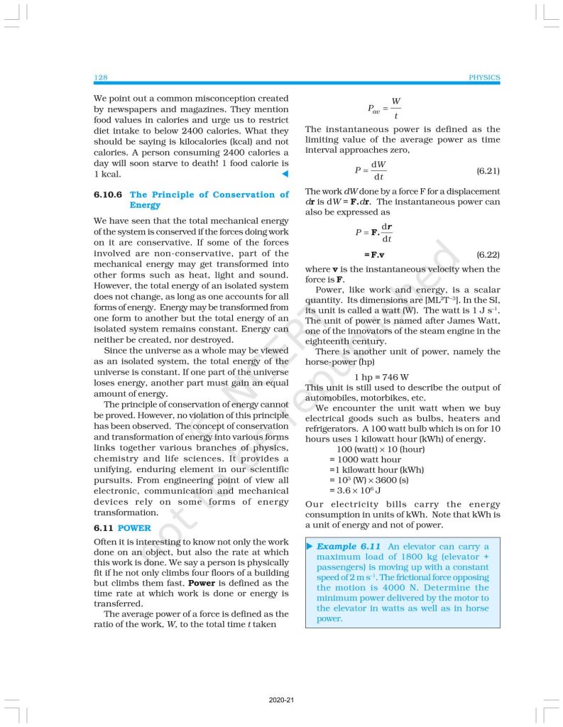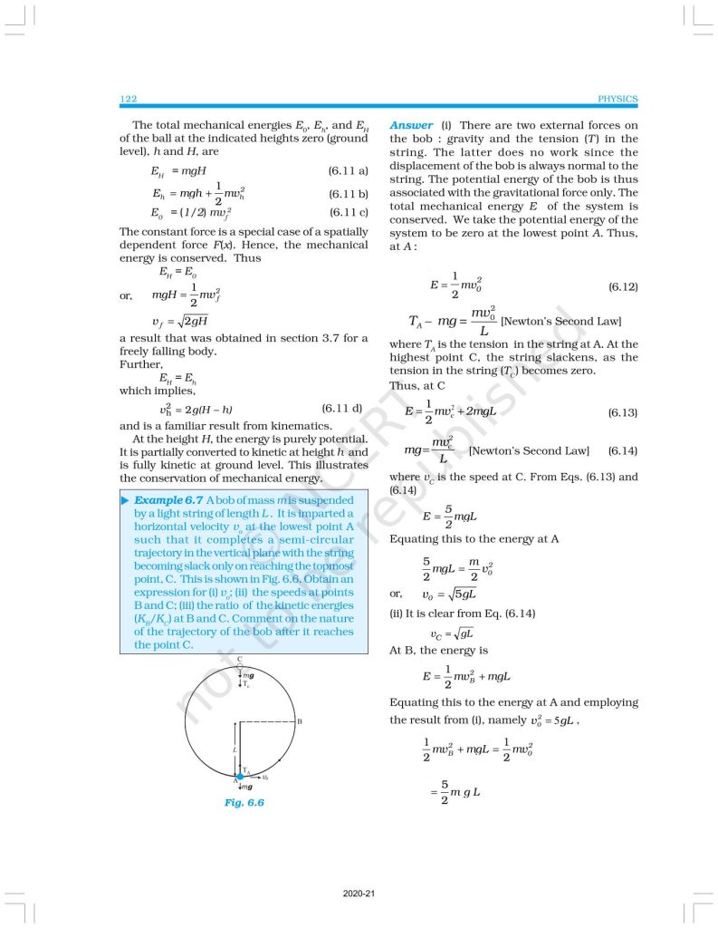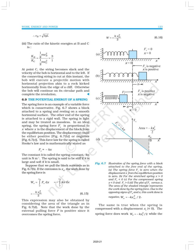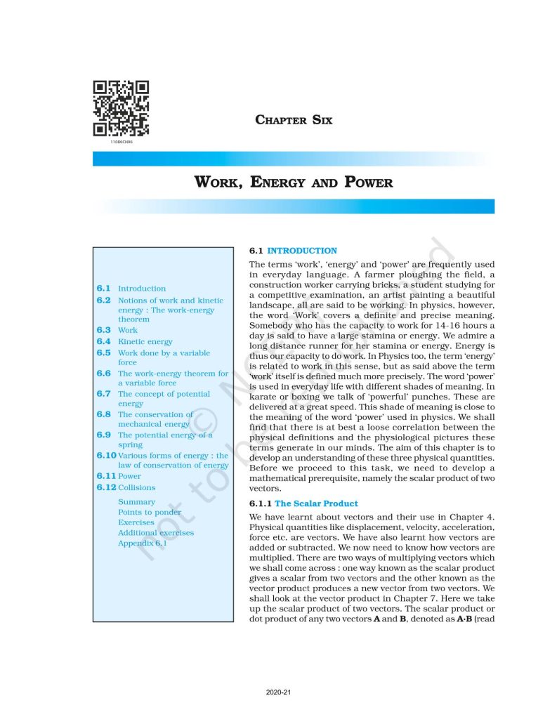 NCERT Book for Class 11 Physics Part 1 – (Chapter 6 – Work, Energy And Power)