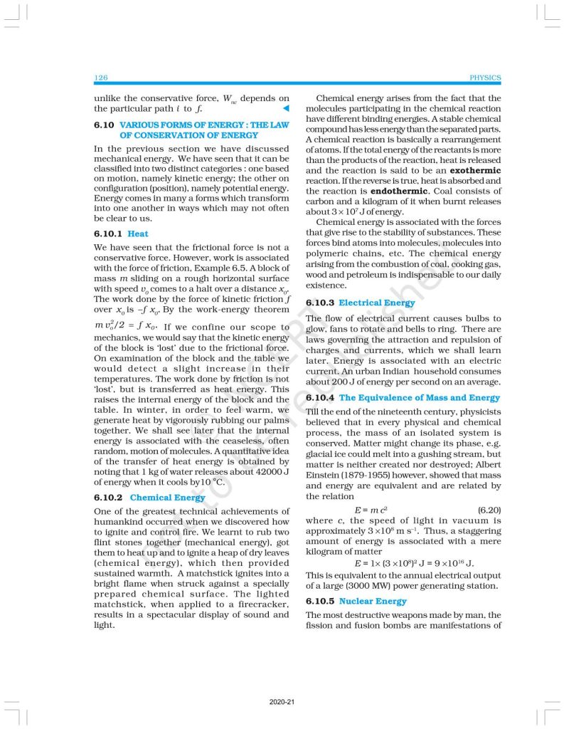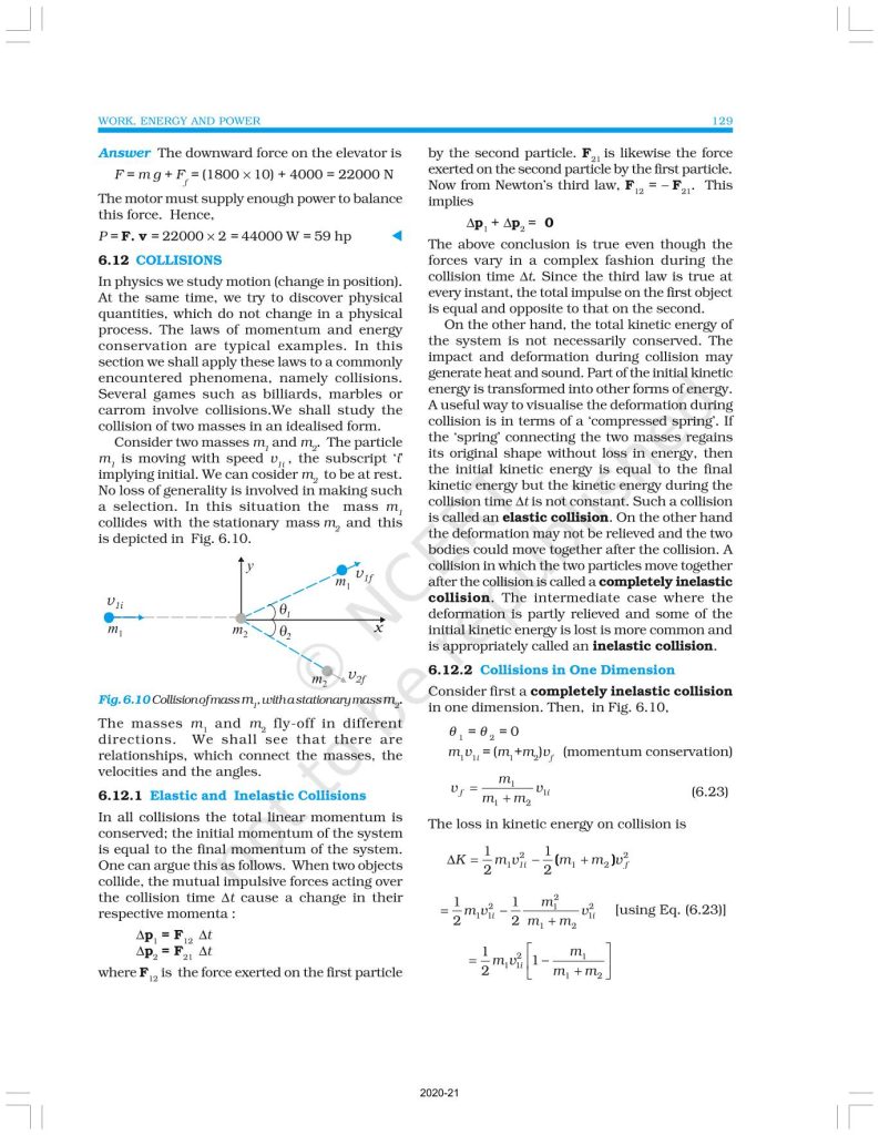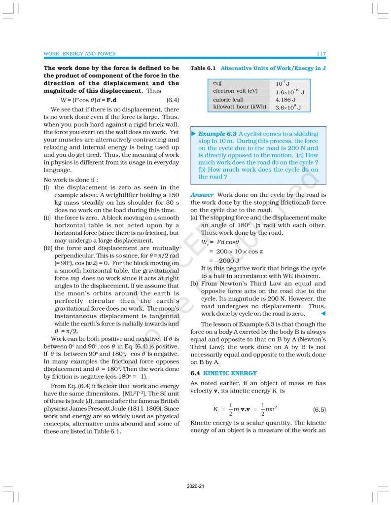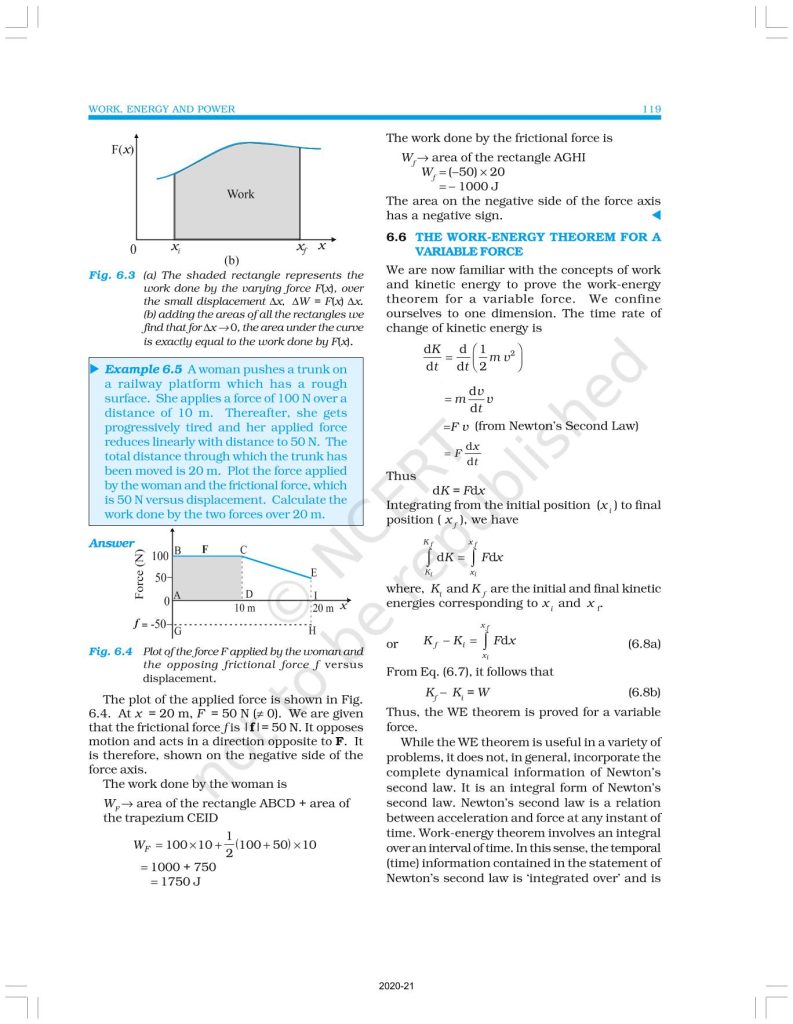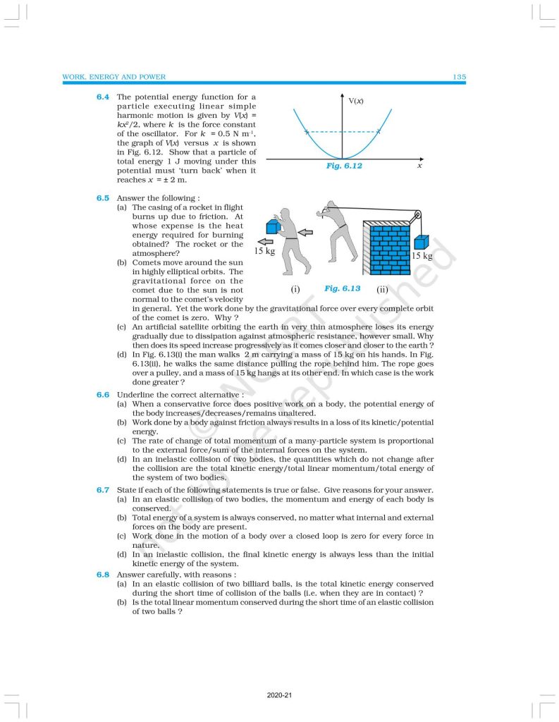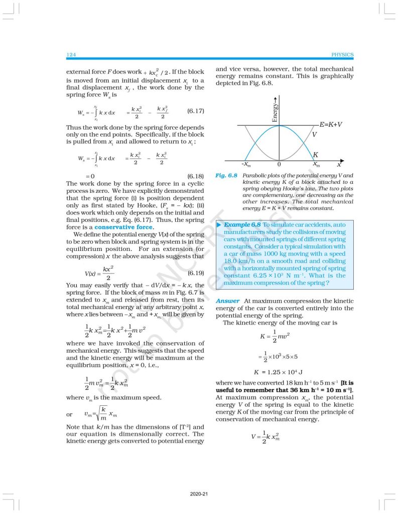 NCERT Book for Class 11 Physics Part 1 – (Chapter 6 – Work, Energy And Power)