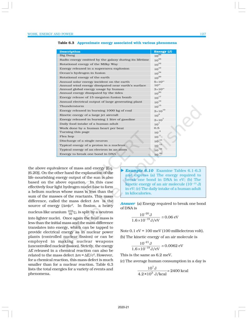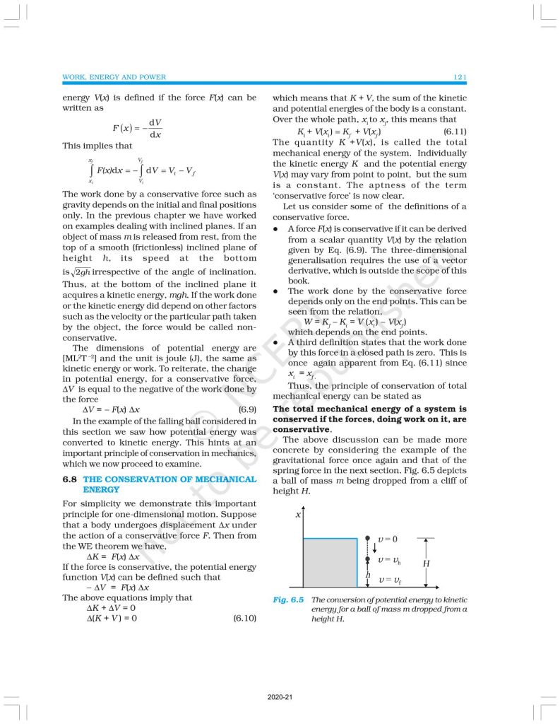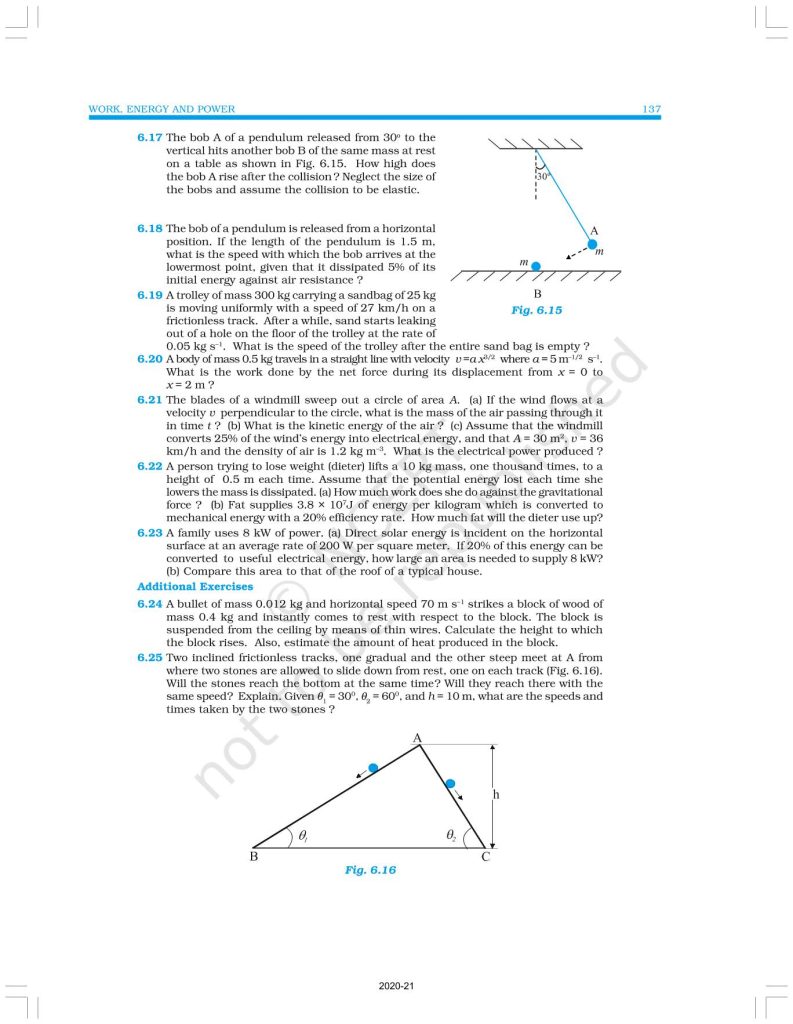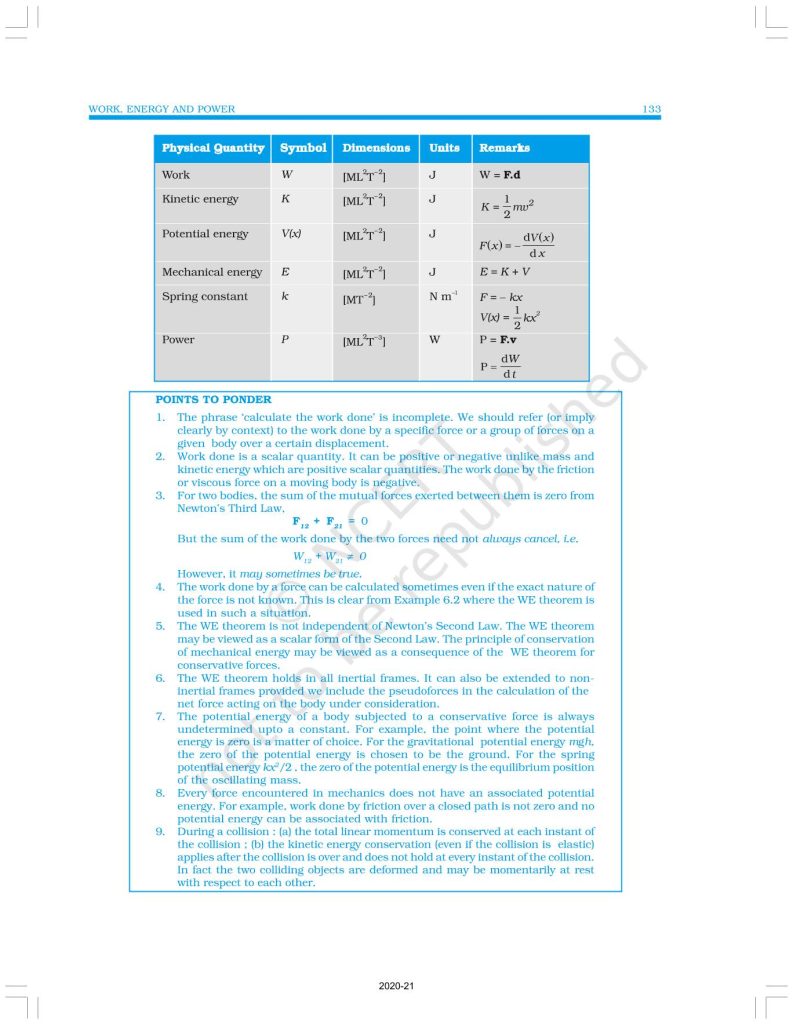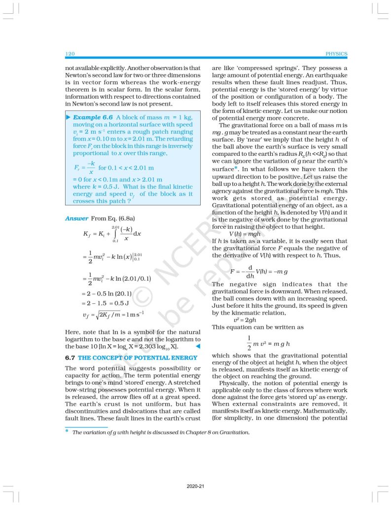 NCERT Book for Class 11 Physics Part 1 – (Chapter 6 – Work, Energy And Power)